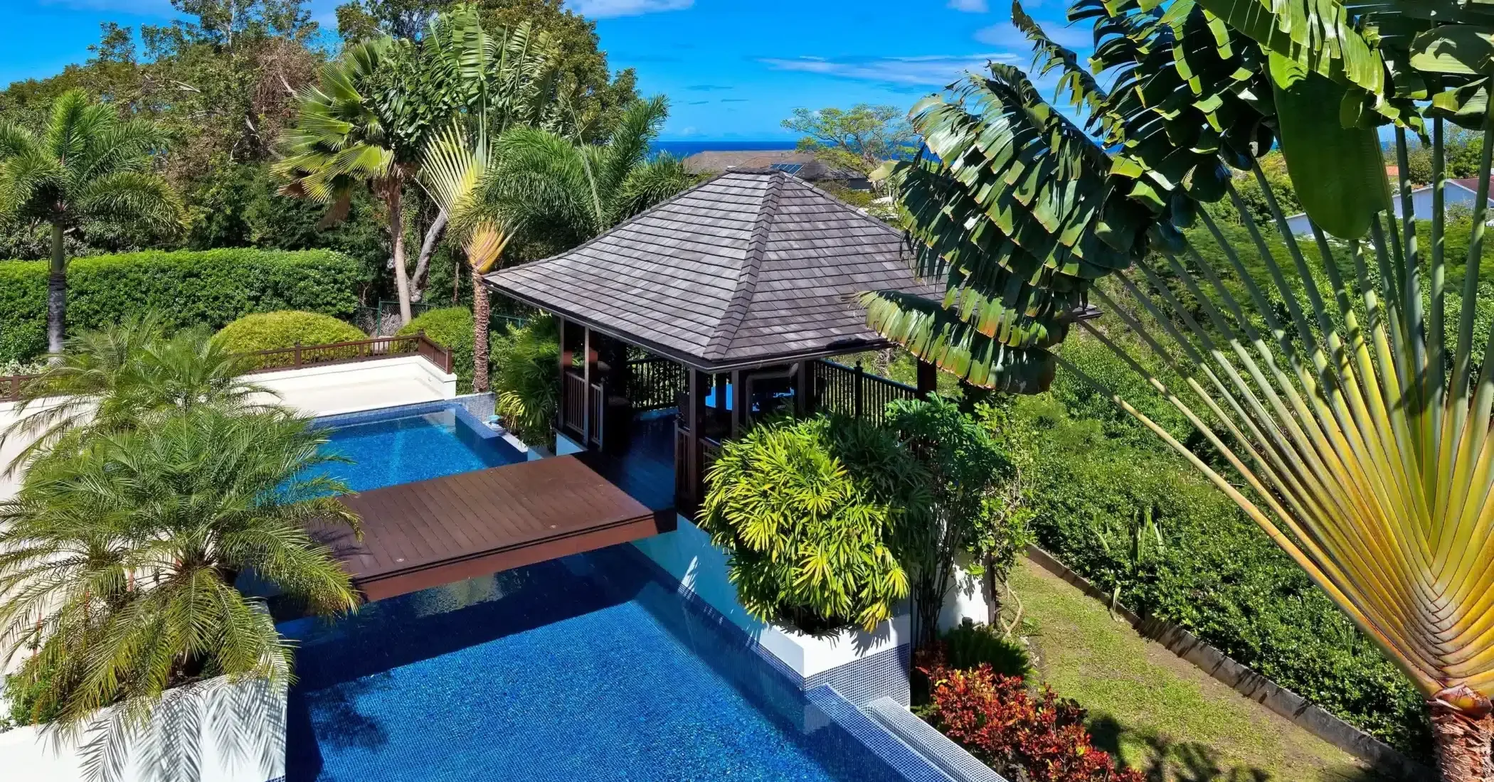 Alila incorporates the best of Barbadian and Balinese design elements, with open plan living spaces and extensive use of beautiful hardwoods to give a natural, organic feel. With beautifully landscaped gardens, infinity pool and raised gazebo, and an exceptional view, this property is a truly stunning tropical paradise.