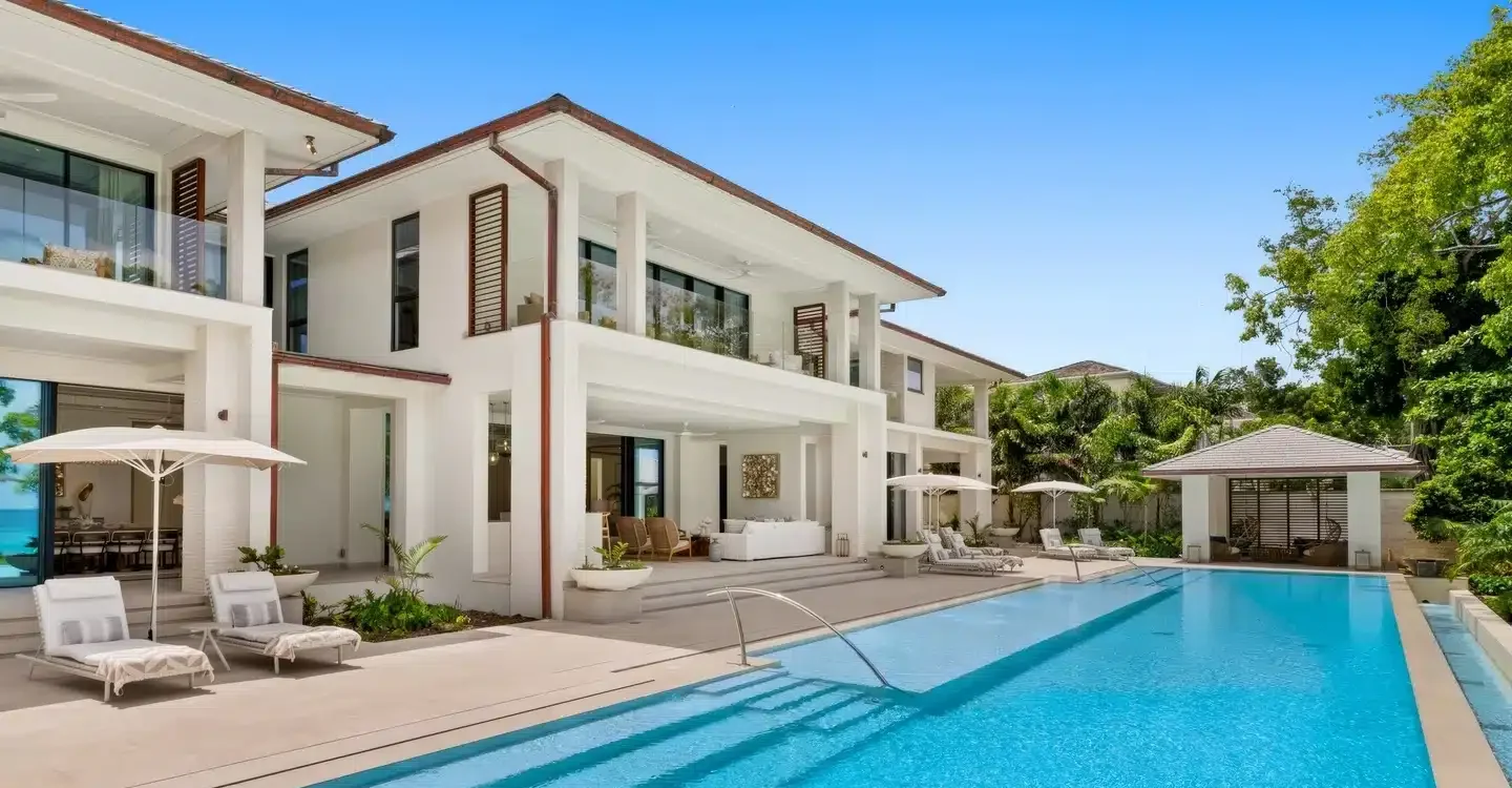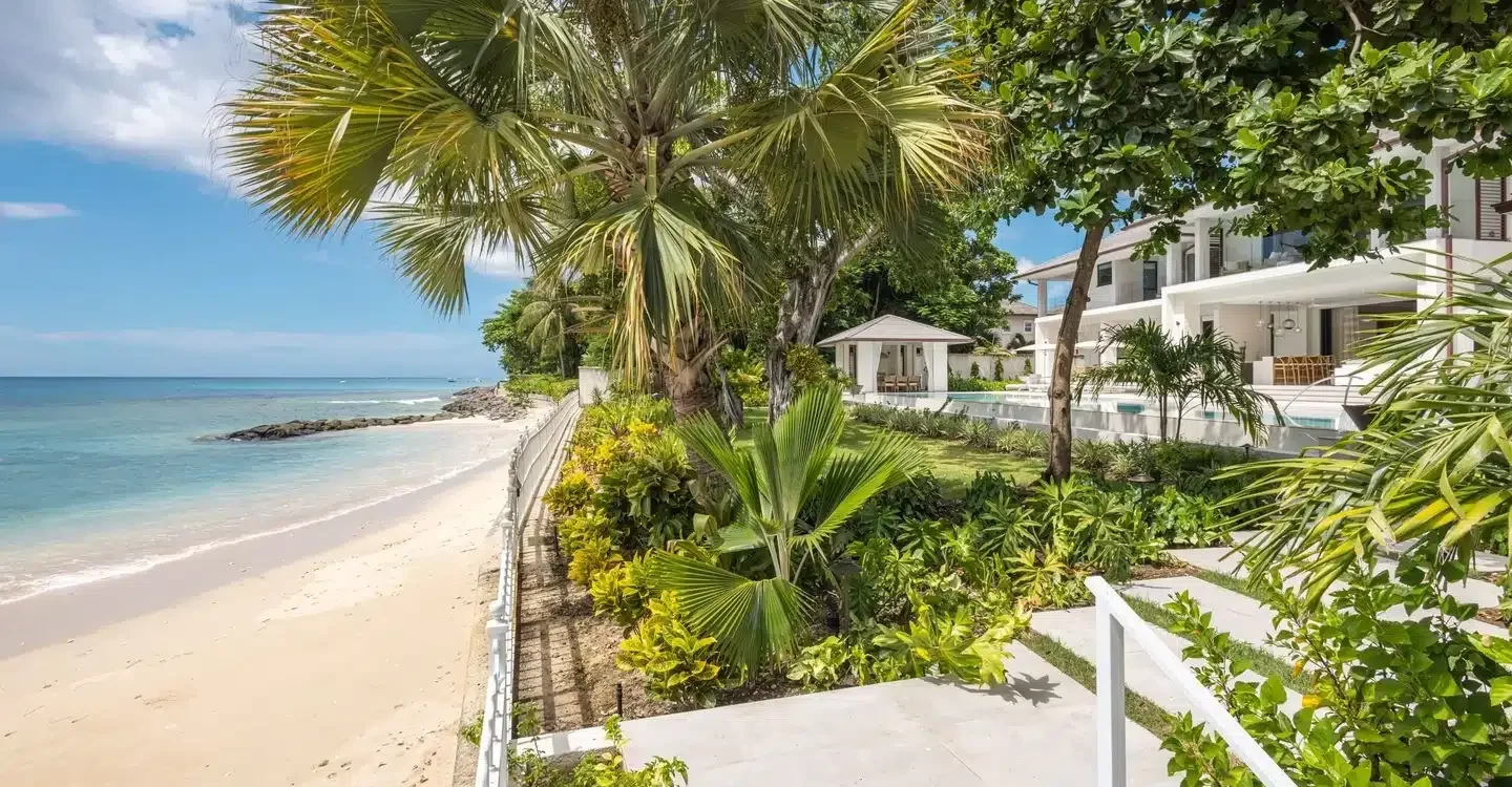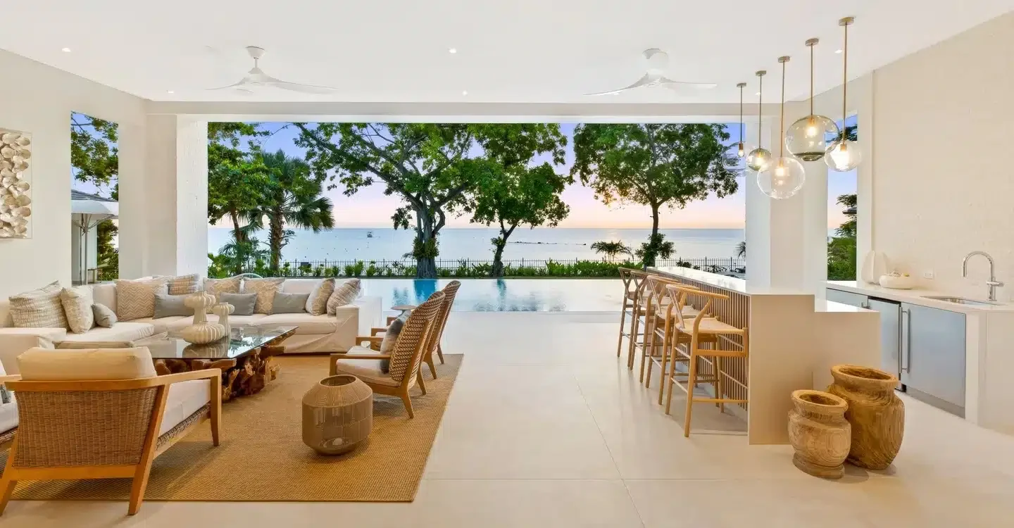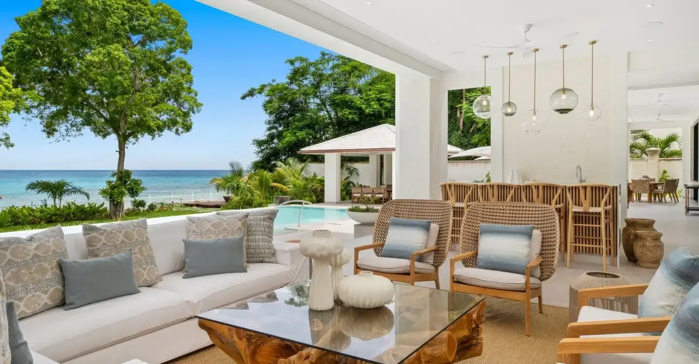 “One Beachlands,” a majestic luxury beachfront vacation villa on Barbados’s coveted West Coast. This brand-new, luxurious property redefines modern living with its avant-garde architecture and state-of-the-art luxury. Covering two expansive floors, “One Beachlands” is a showcase of elite architecture featuring top international brands, superior fittings, and the finest materials. The villa’s exterior, characterised by bespoke design and full-height windows, offers unparalleled views of the Caribbean Sea, making it a prime choice for Barbados luxury villas to rent.