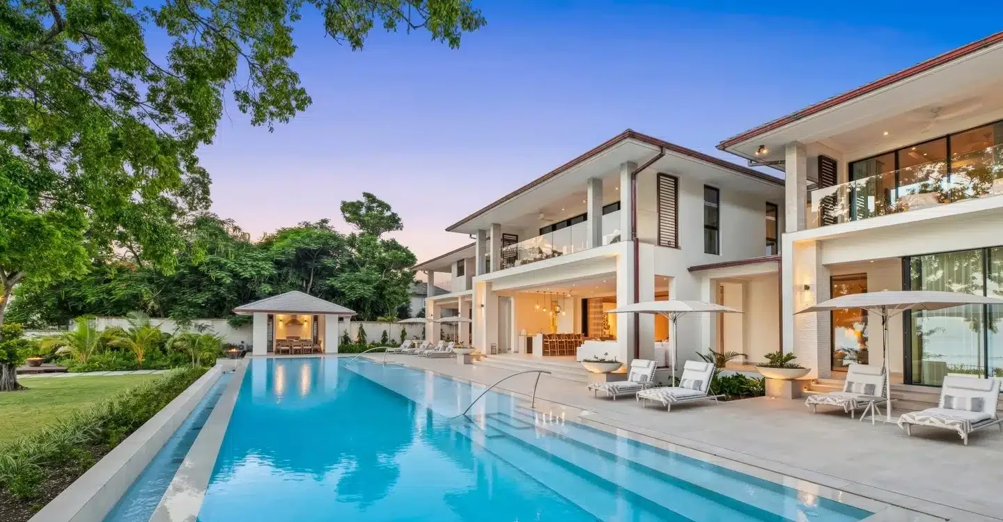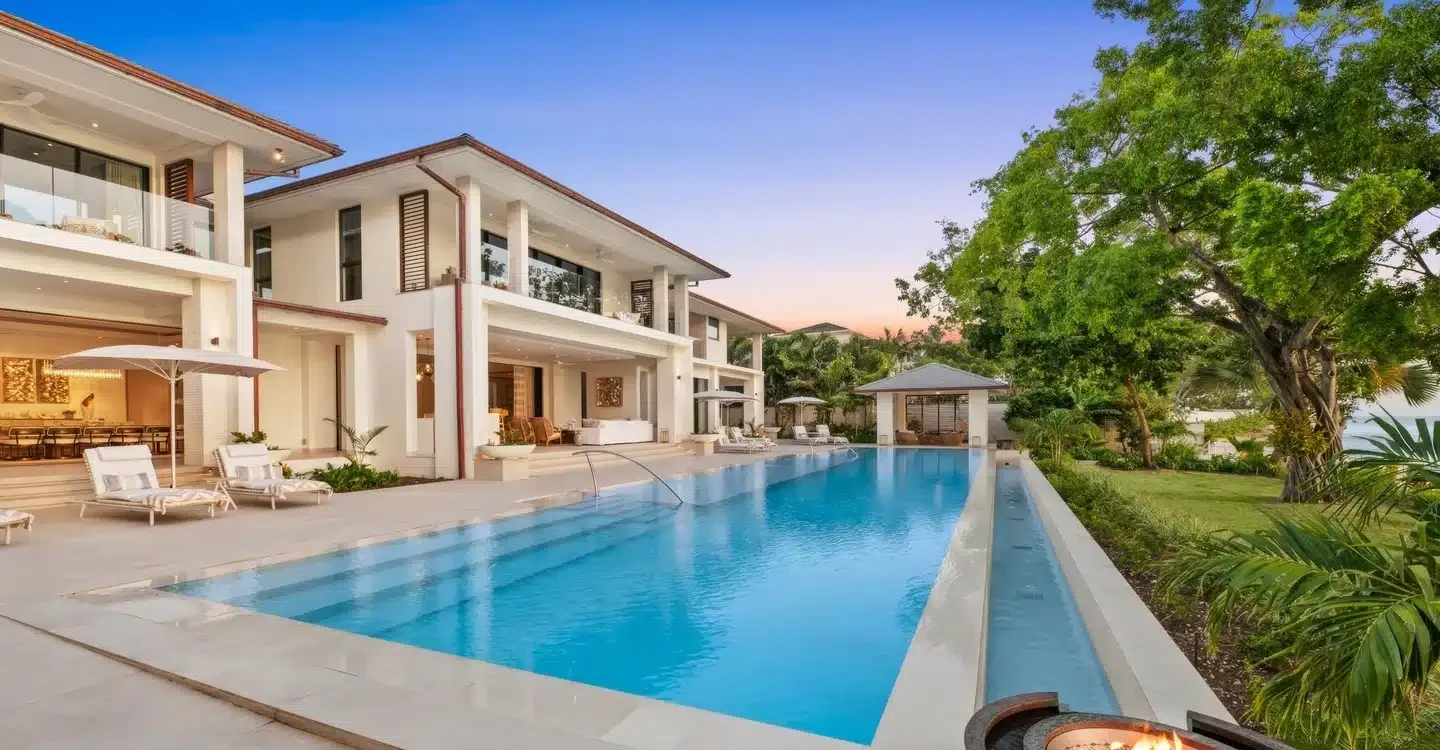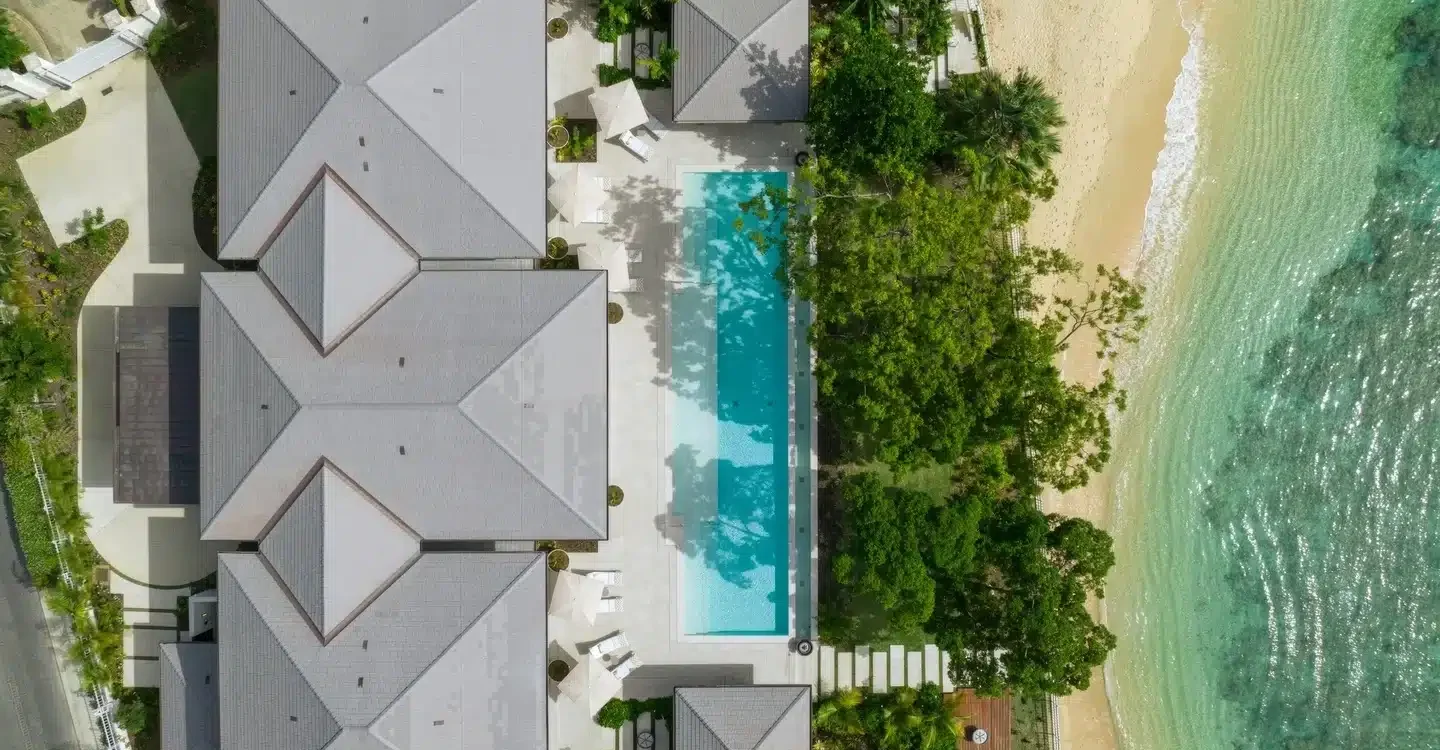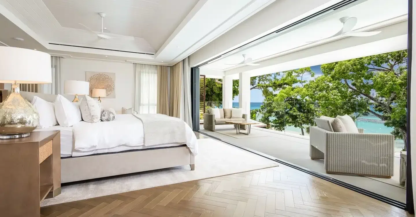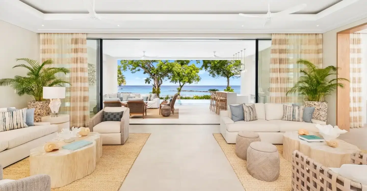 “One Beachlands,” a majestic luxury beachfront vacation villa on Barbados’s coveted West Coast. This brand-new, luxurious property redefines modern living with its avant-garde architecture and state-of-the-art luxury. Covering two expansive floors, “One Beachlands” is a showcase of elite architecture featuring top international brands, superior fittings, and the finest materials. The villa’s exterior, characterised by bespoke design and full-height windows, offers unparalleled views of the Caribbean Sea, making it a prime choice for Barbados luxury villas to rent.