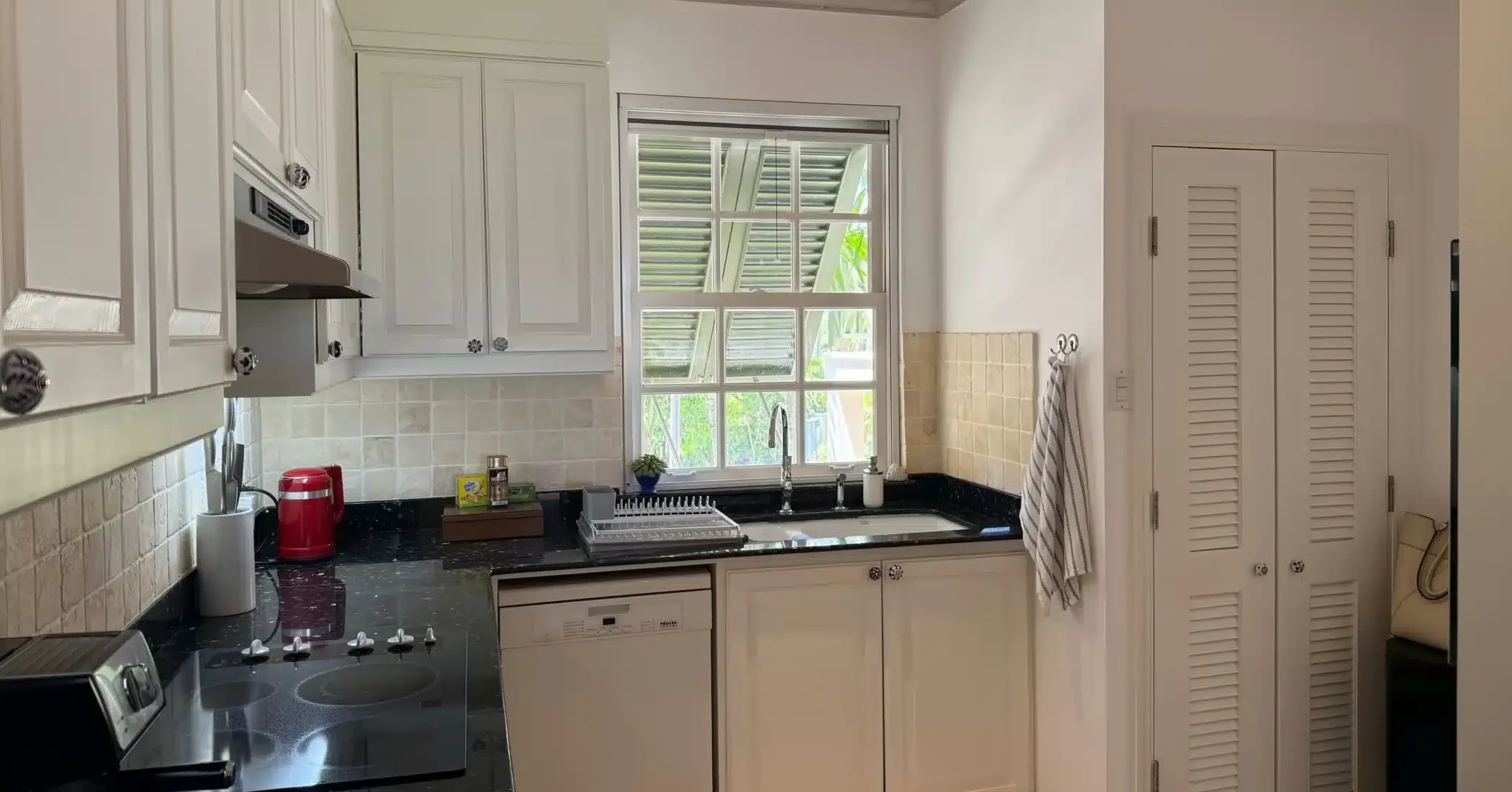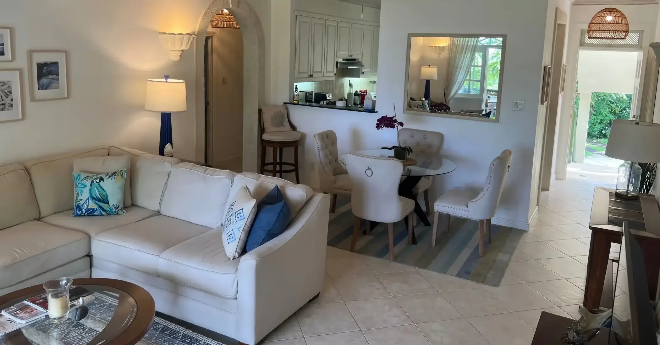 This two bedroom apartment at Beacon Hill sleeps 4, has wonderful sea views and is set in well-tended tropical gardens, just a few steps from famous Mullins beach. Beacon Hill is a small gated community, with an inviting, shared pool and jacuzzi adjacent to the apartment building.