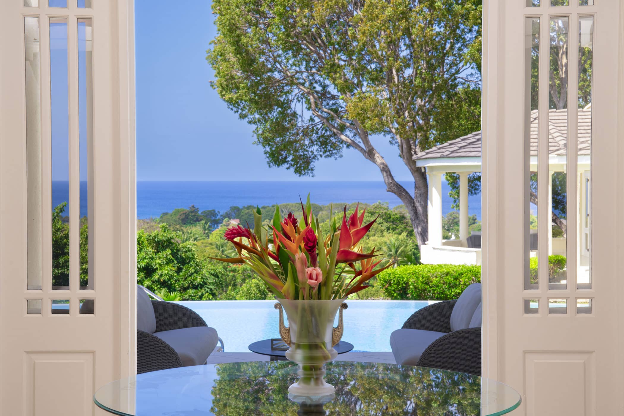 A chic villa with the most exclusive ocean view on the island, Bohemia stands the test of time as one of the most prestigious homes on the coveted West Coast of the island. Two acres of meticulously maintained grounds provide a lush tropical garden oasis where Green Monkeys are avid visitors. The infinity pool surrounded by the sounds of exotic birds and towering palm trees welcomes an early morning yoga class. Sunset...