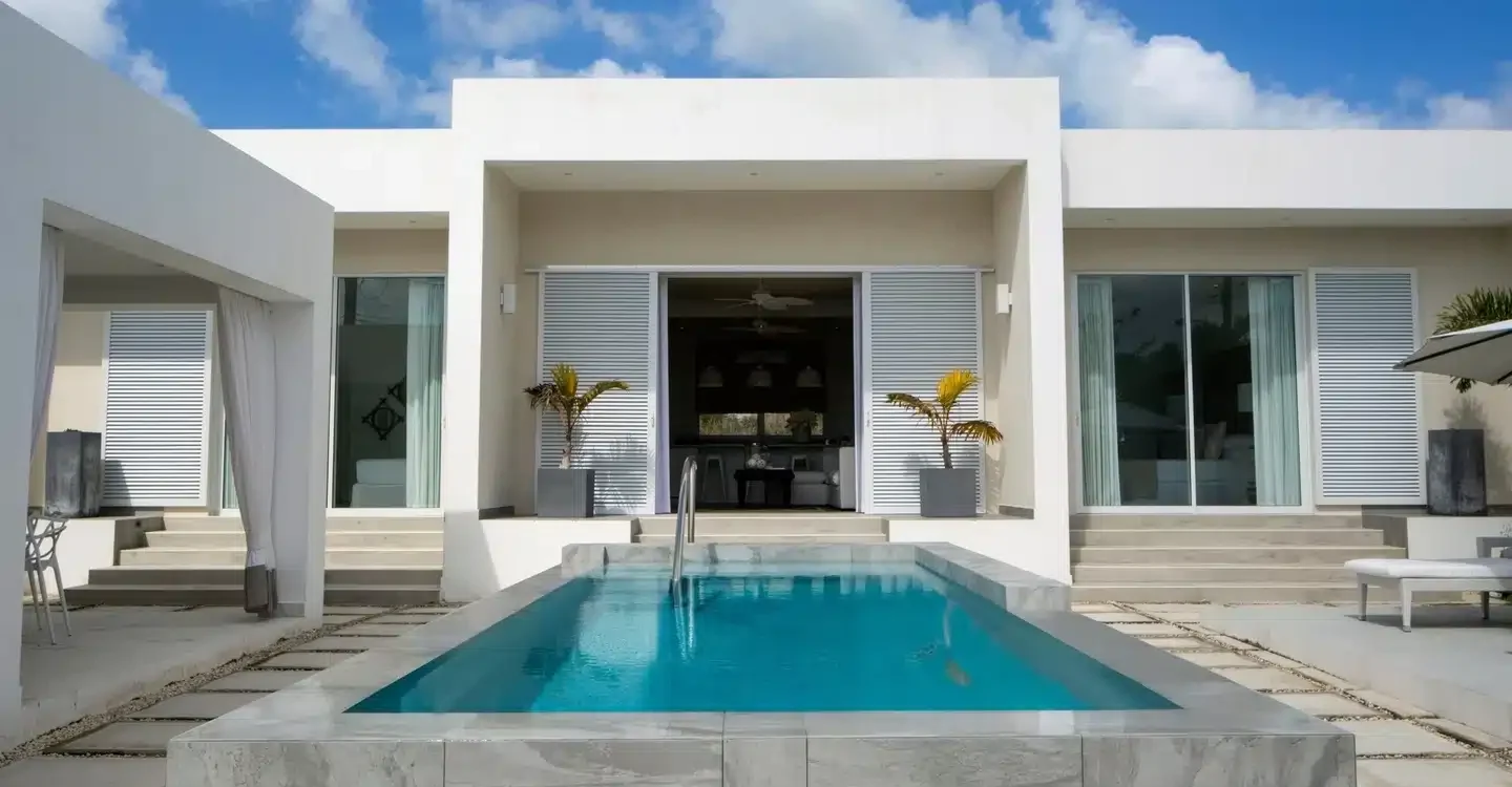 Footprints South Cottage sits just a minute from the Alleynes Bay and is a private tropical oasis with a sleek and stylish finish. This luxury vacation villa can be rented separately, combined with The North Cottage or both cottages can be rented together with the main Footprints residence. The infinity-edge pool sits in the middle of the courtyard amongst greenery and plush lounge furniture. A covered dining area is also a favourite place for guests to enjoy meals.