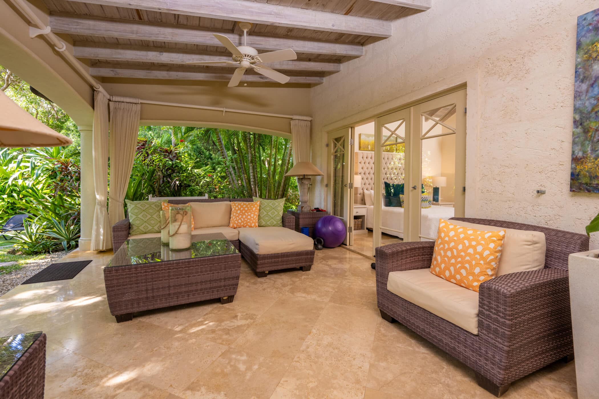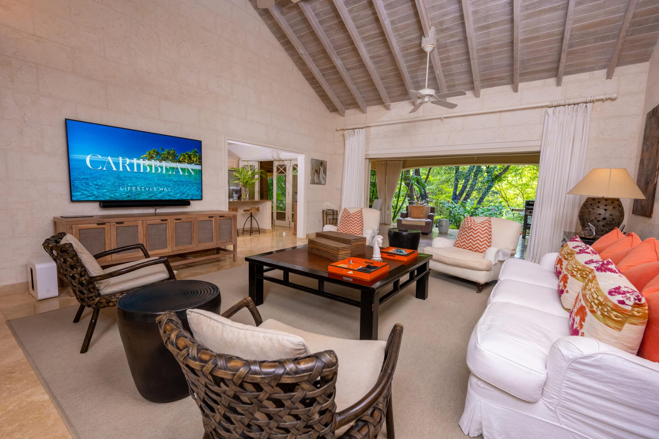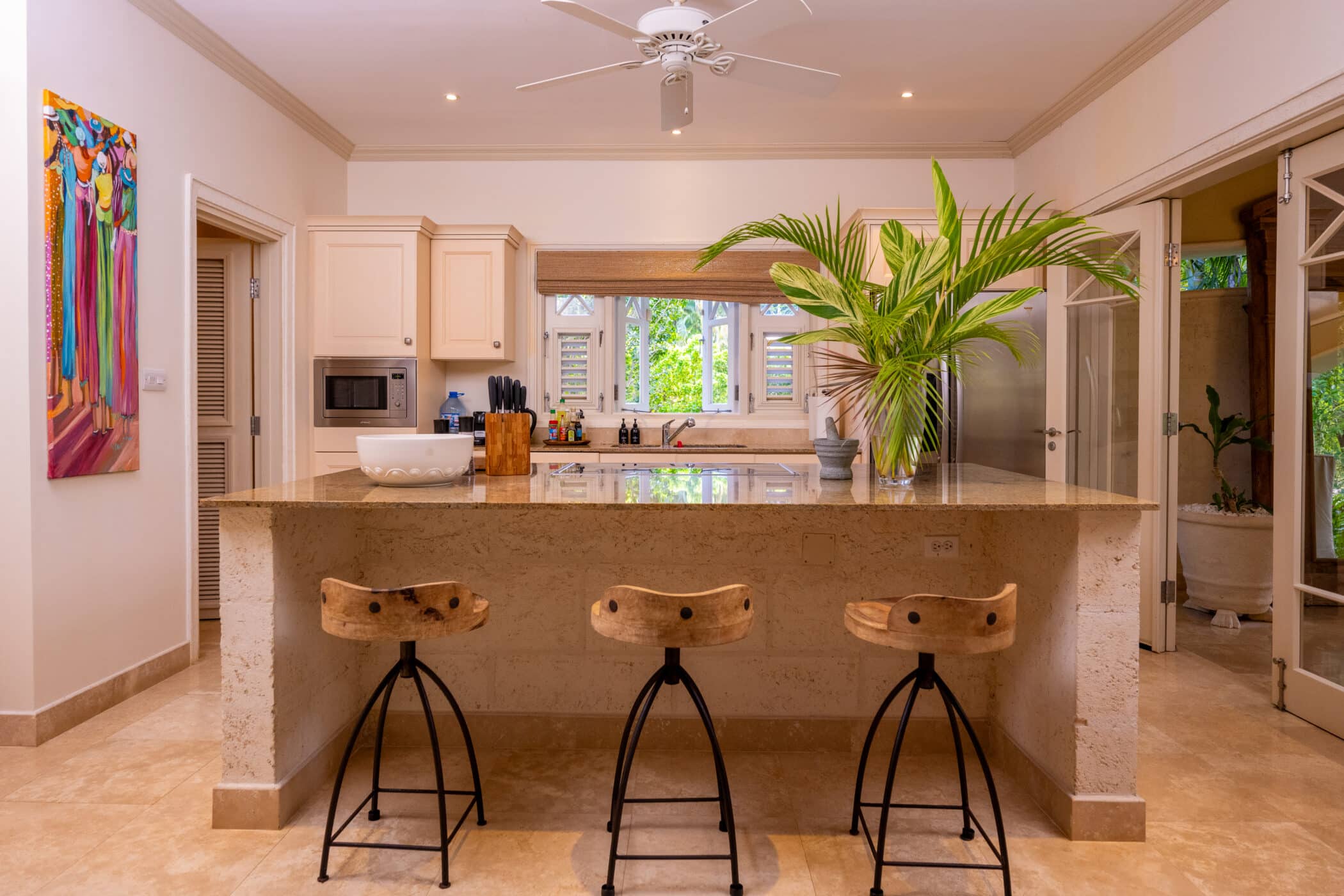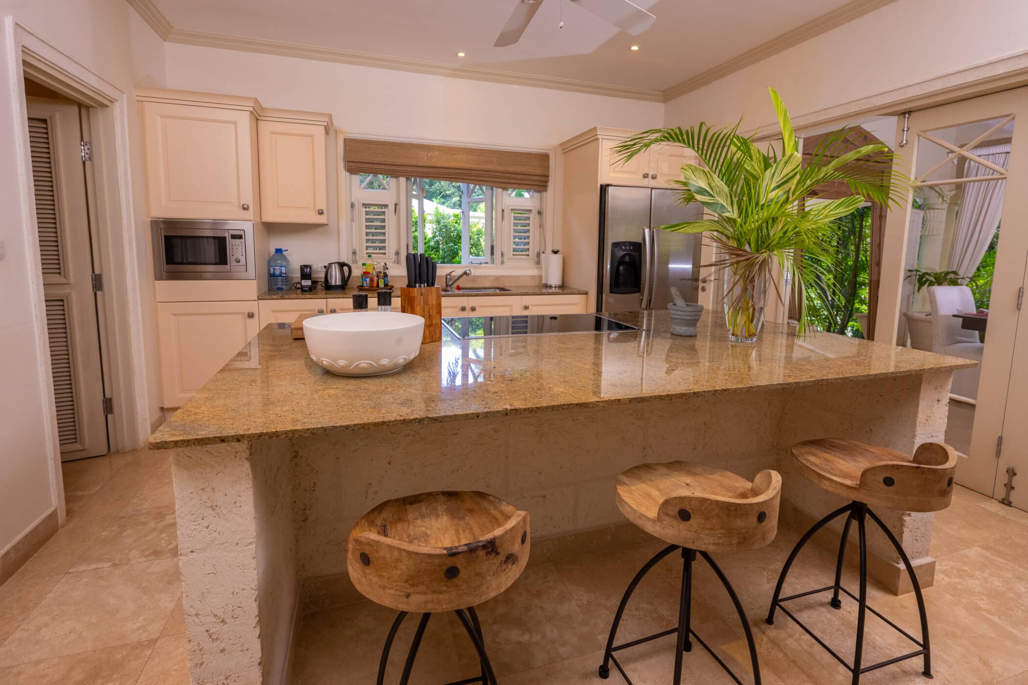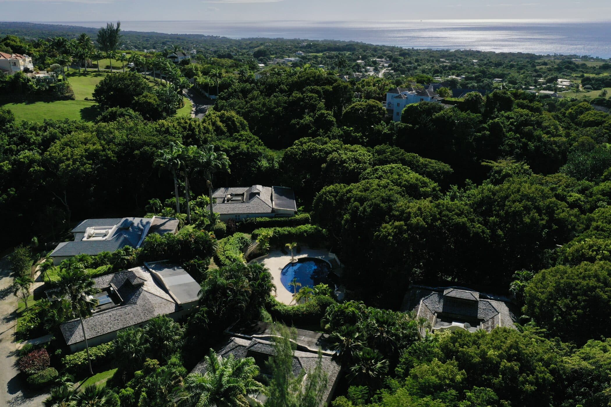 Greentails Villa 5, is a stunning 4-bedroom estate located 400ft above the Platinum Coast of Barbados, surrounded by constant breezes, mature trees, and lush tropical flora. This exquisite 3-bedroom, 3.5-bathroom villa spans approximately 2,700 sq. ft. and features a 1-bedroom guest cottage, offering additional private accommodation. The property epitomises luxury with high-quality finishes, natural stone floors, elegant bathrooms, and modern fitted kitchens with built-in appliances. Tray ceilings and open eaves, paired with ceiling fans, ensure a cool, comfortable environment throughout.