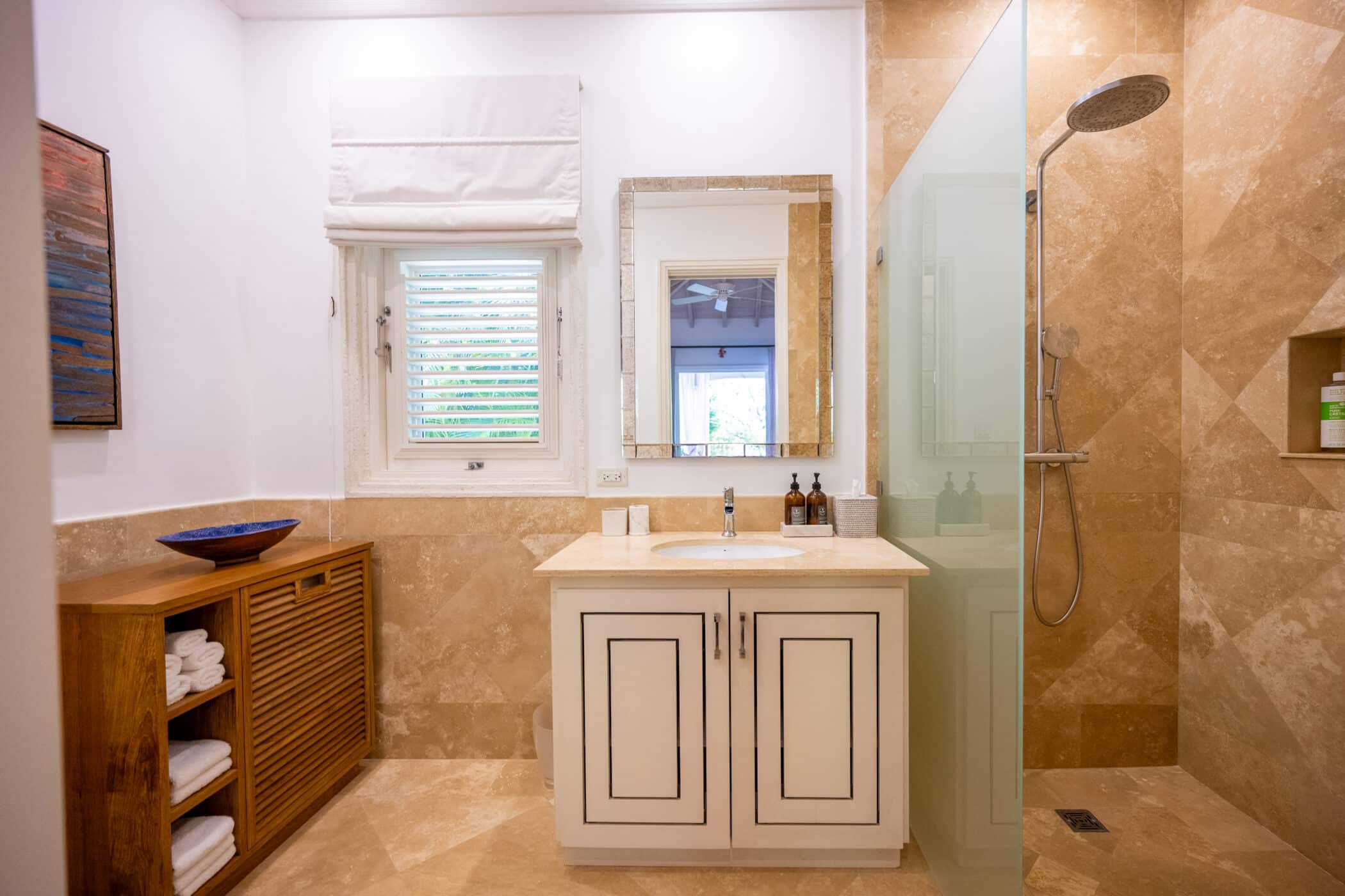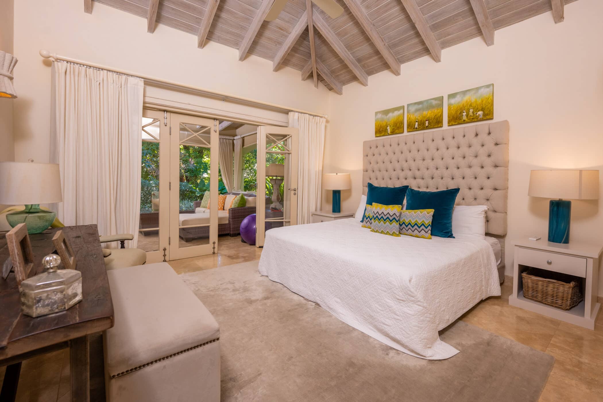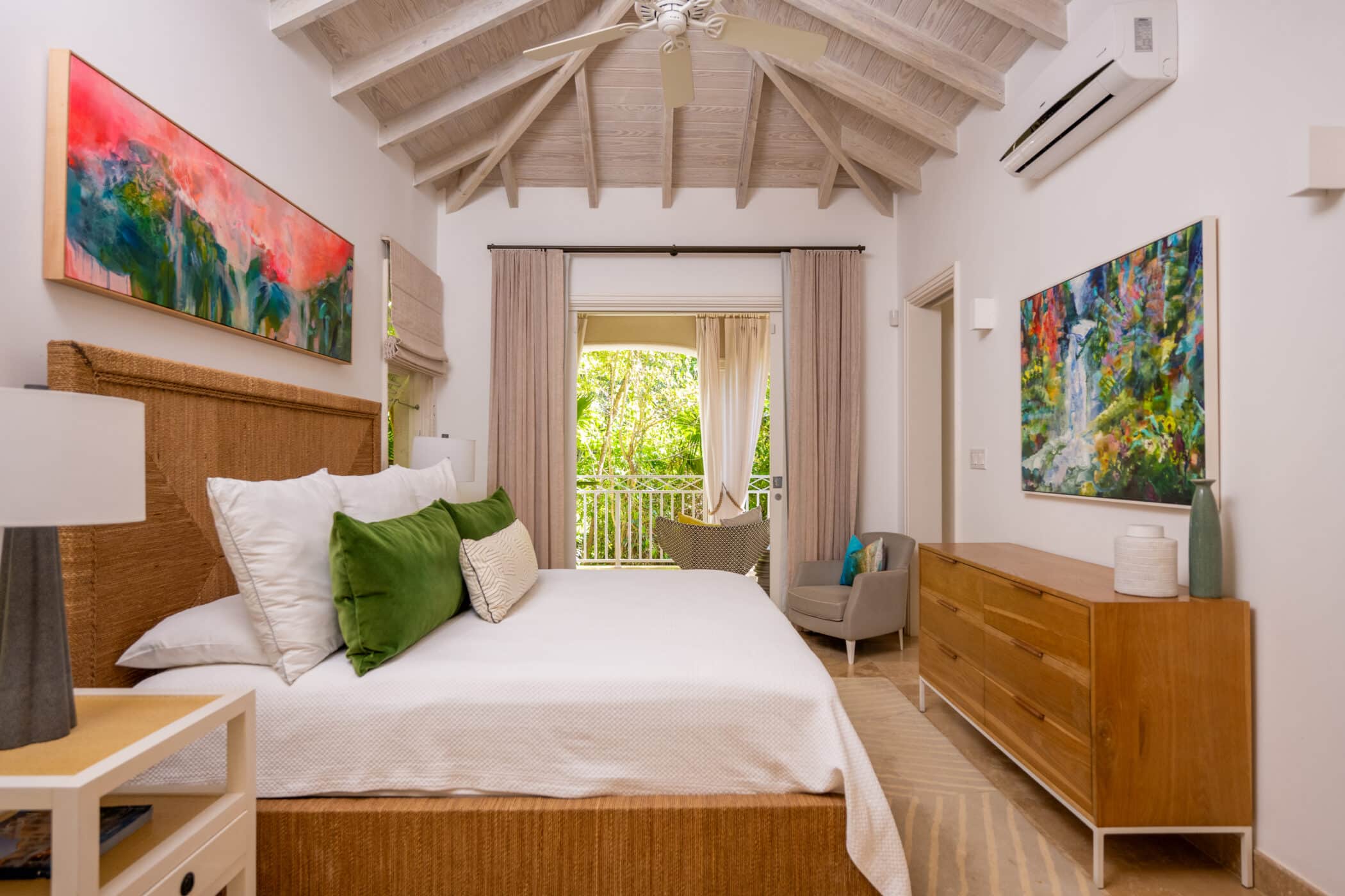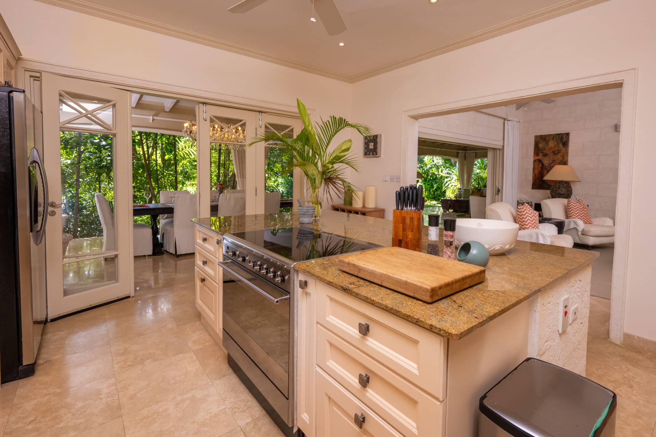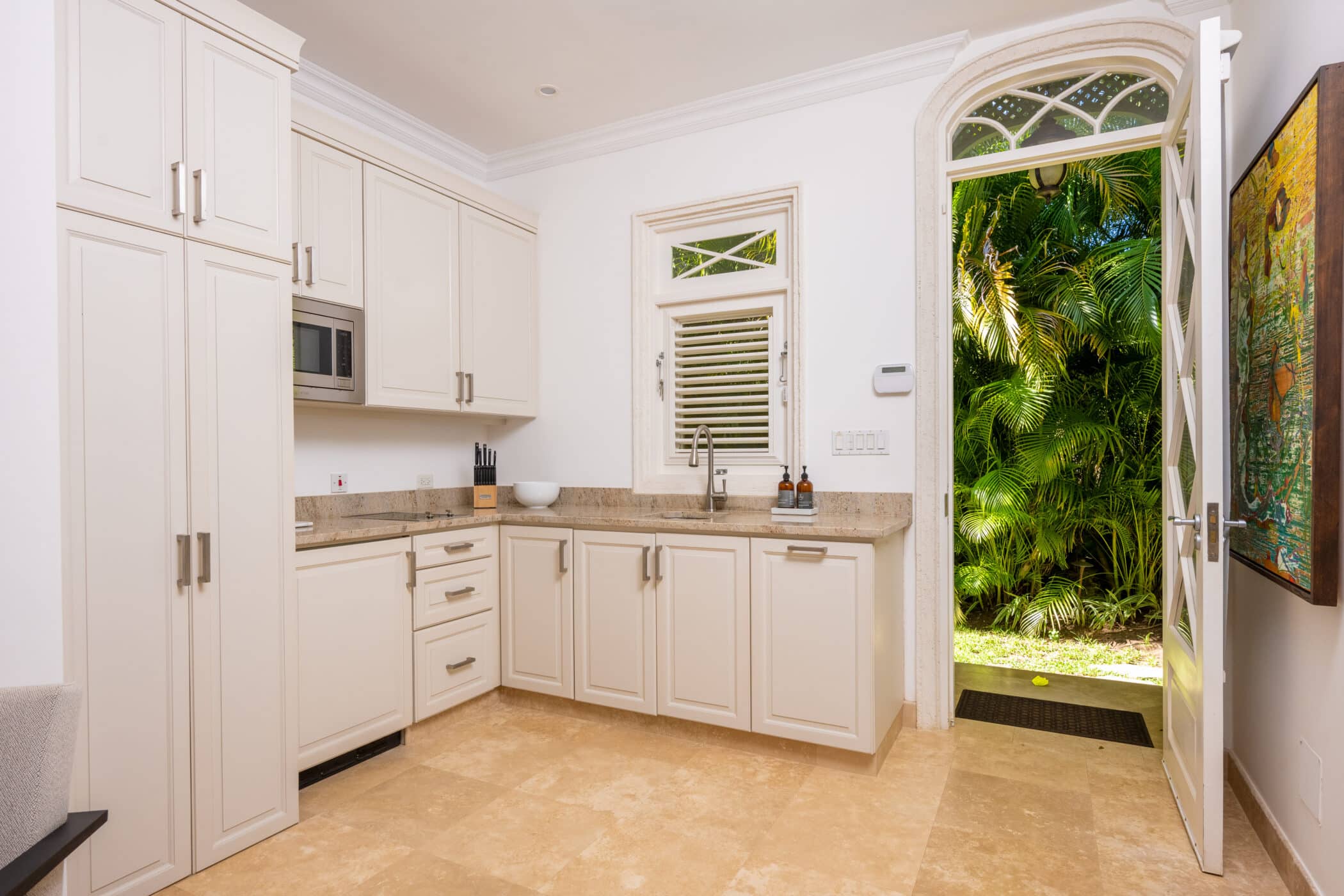 Greentails Villa 5, is a stunning 4-bedroom estate located 400ft above the Platinum Coast of Barbados, surrounded by constant breezes, mature trees, and lush tropical flora. This exquisite 3-bedroom, 3.5-bathroom villa spans approximately 2,700 sq. ft. and features a 1-bedroom guest cottage, offering additional private accommodation. The property epitomises luxury with high-quality finishes, natural stone floors, elegant bathrooms, and modern fitted kitchens with built-in appliances. Tray ceilings and open eaves, paired with ceiling fans, ensure a cool, comfortable environment throughout.