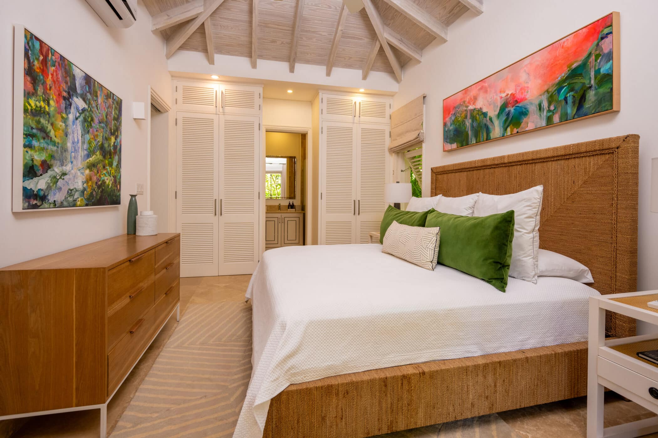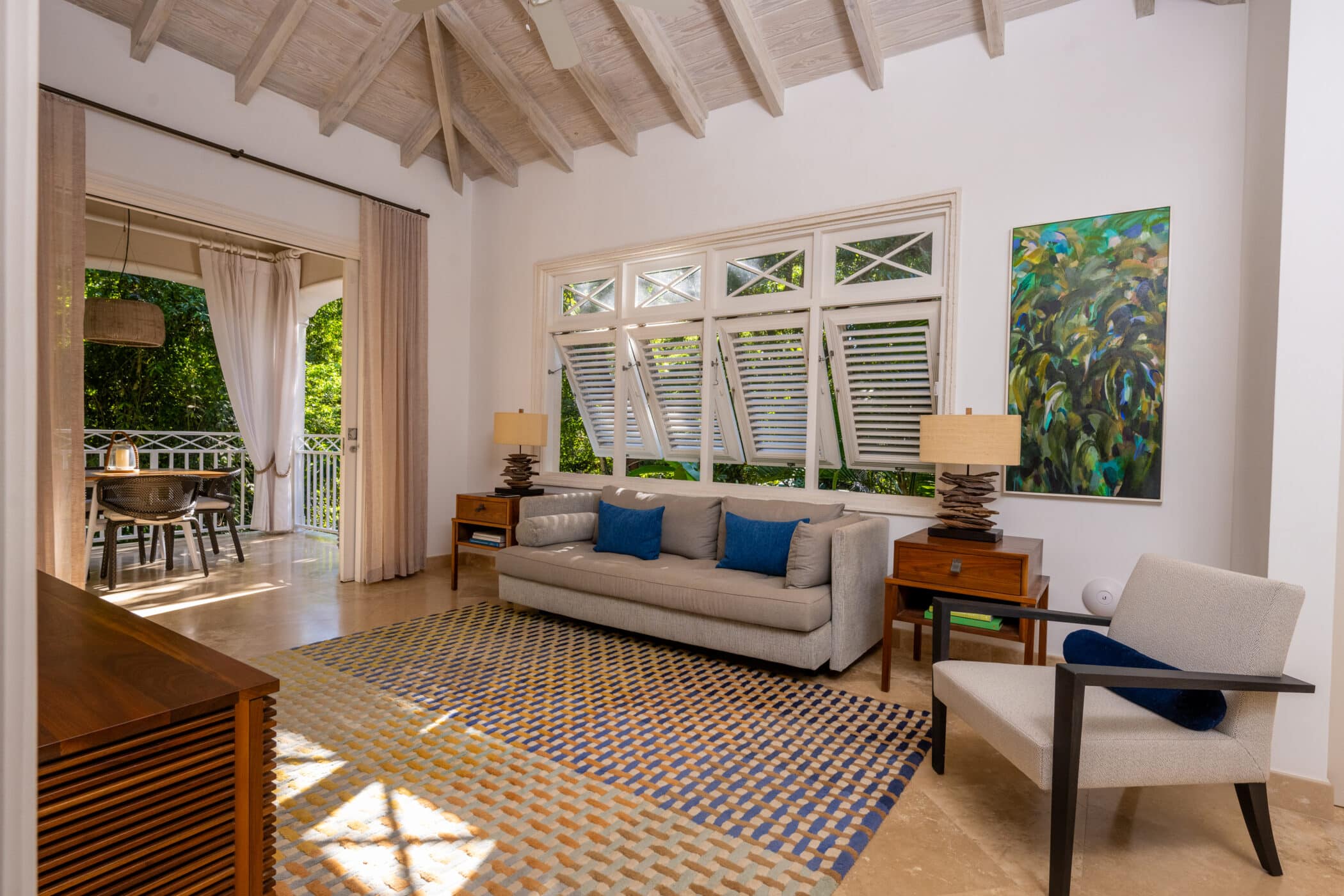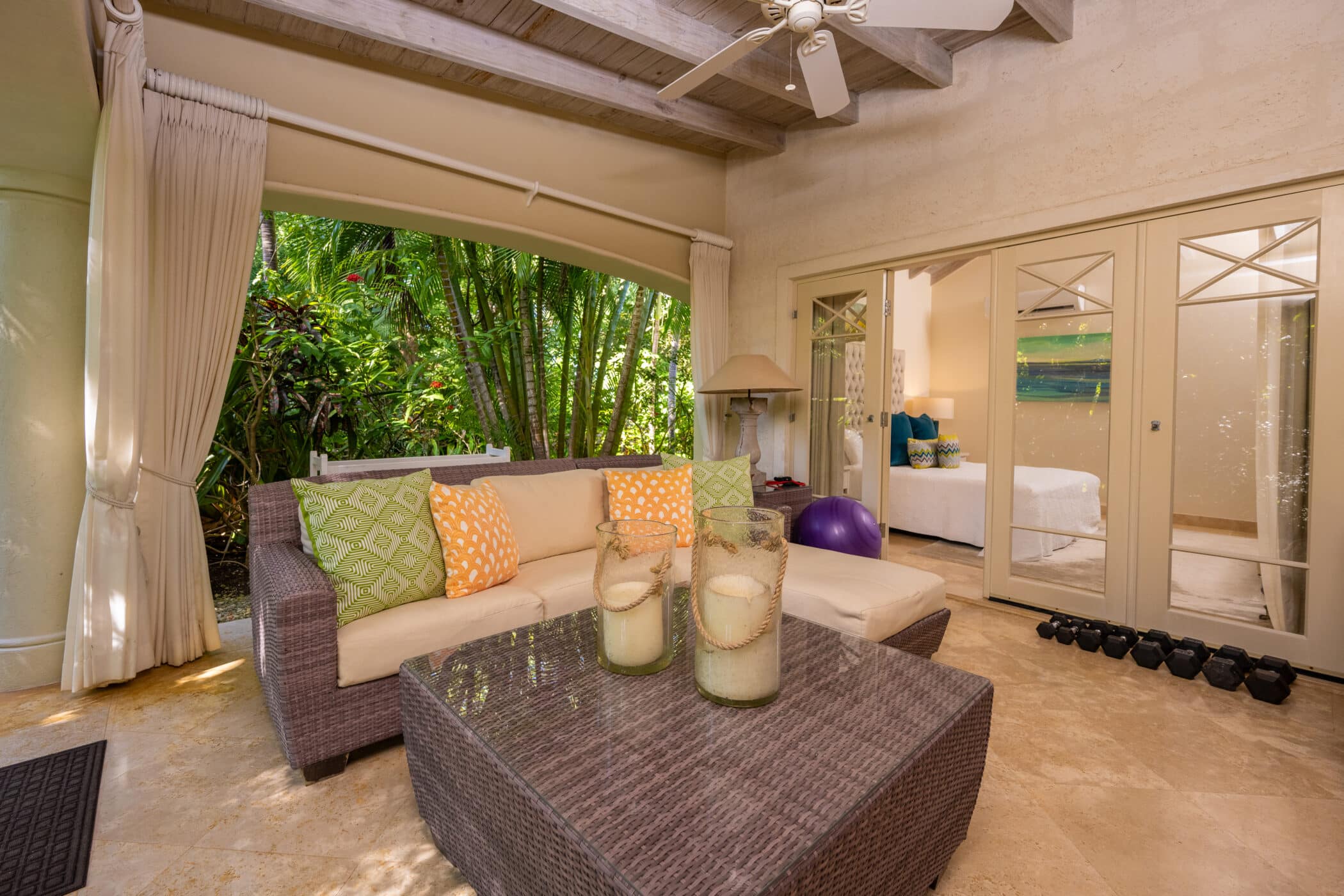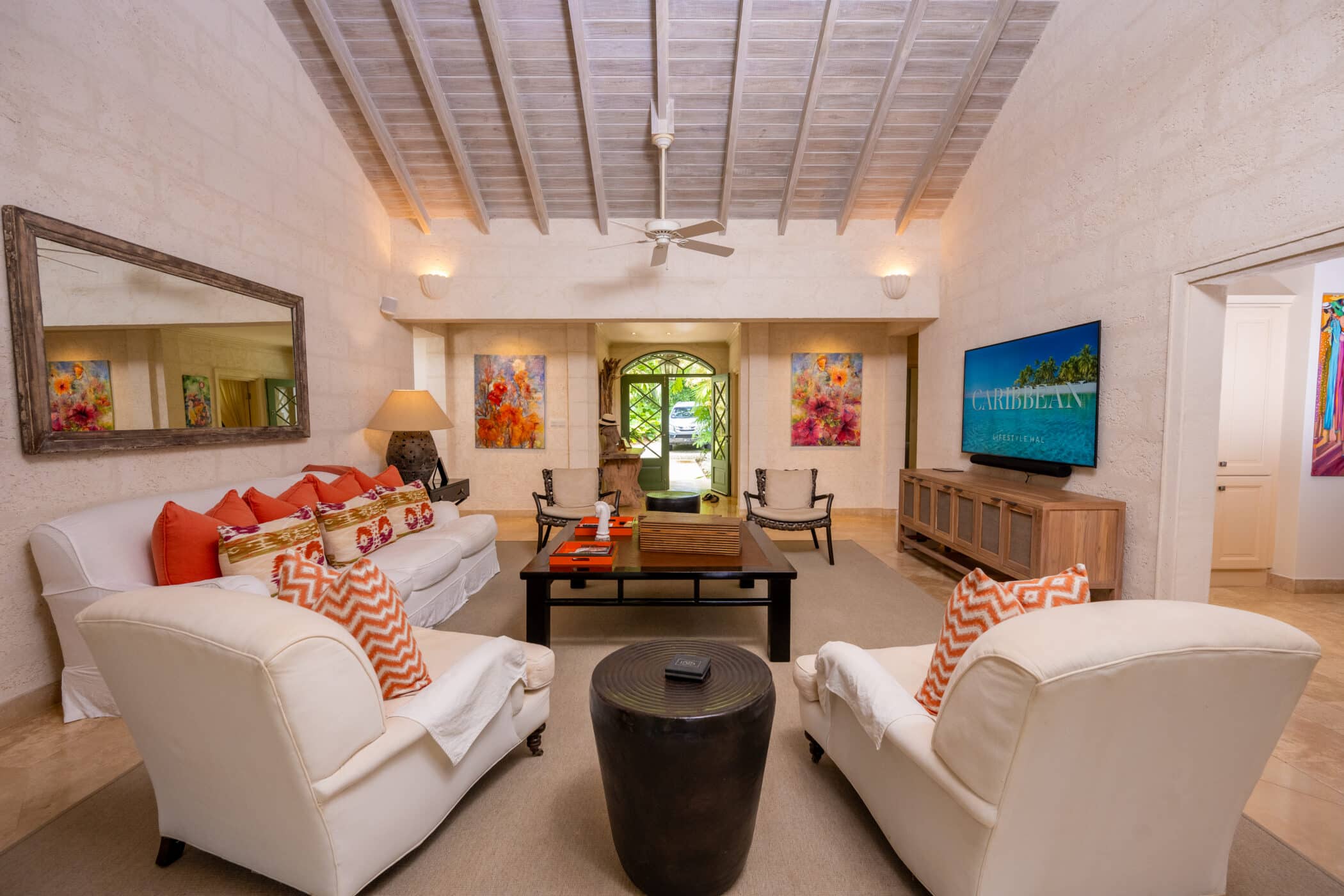 Greentails Villa 5, is a stunning 4-bedroom estate located 400ft above the Platinum Coast of Barbados, surrounded by constant breezes, mature trees, and lush tropical flora. This exquisite 3-bedroom, 3.5-bathroom villa spans approximately 2,700 sq. ft. and features a 1-bedroom guest cottage, offering additional private accommodation. The property epitomises luxury with high-quality finishes, natural stone floors, elegant bathrooms, and modern fitted kitchens with built-in appliances. Tray ceilings and open eaves, paired with ceiling fans, ensure a cool, comfortable environment throughout.
