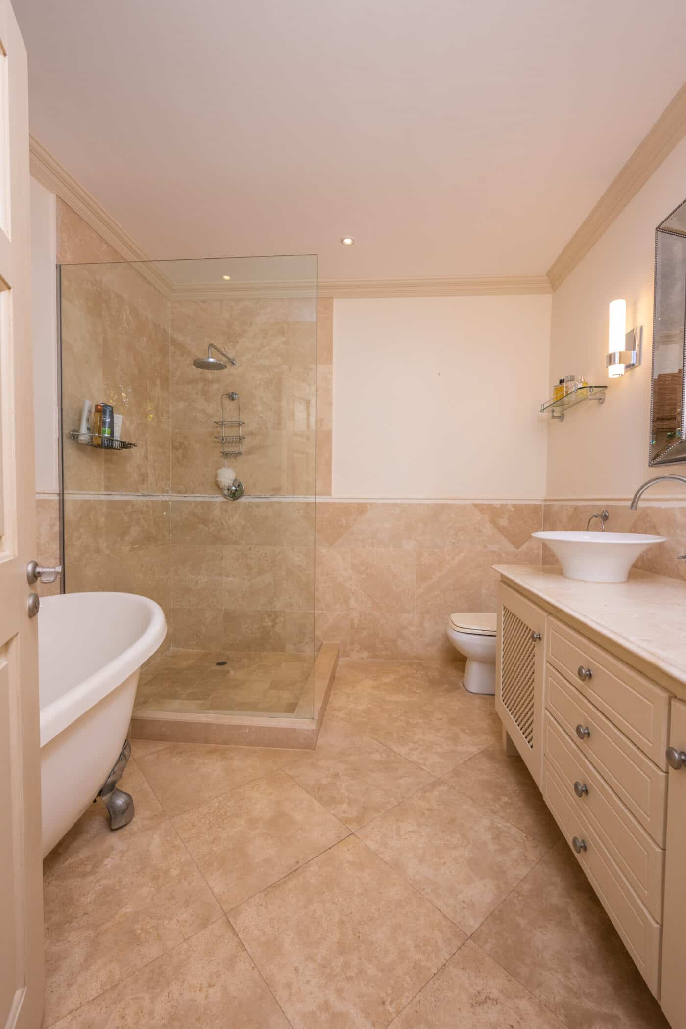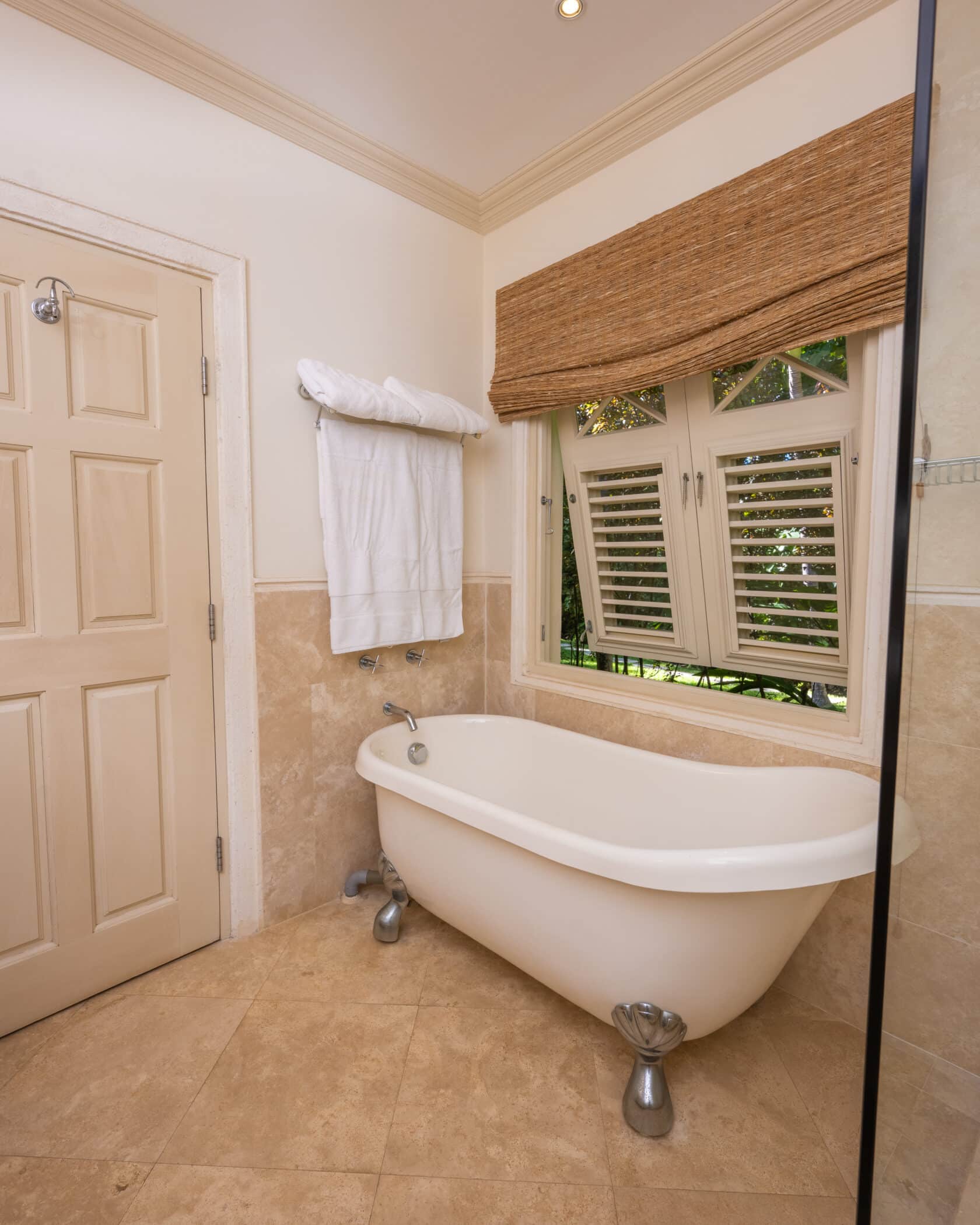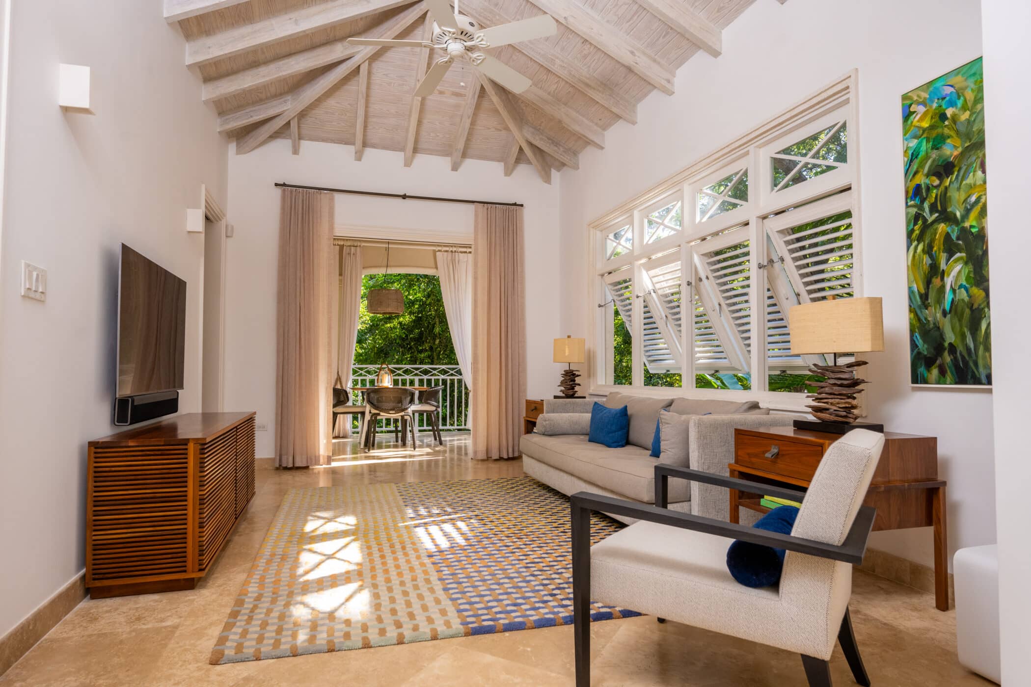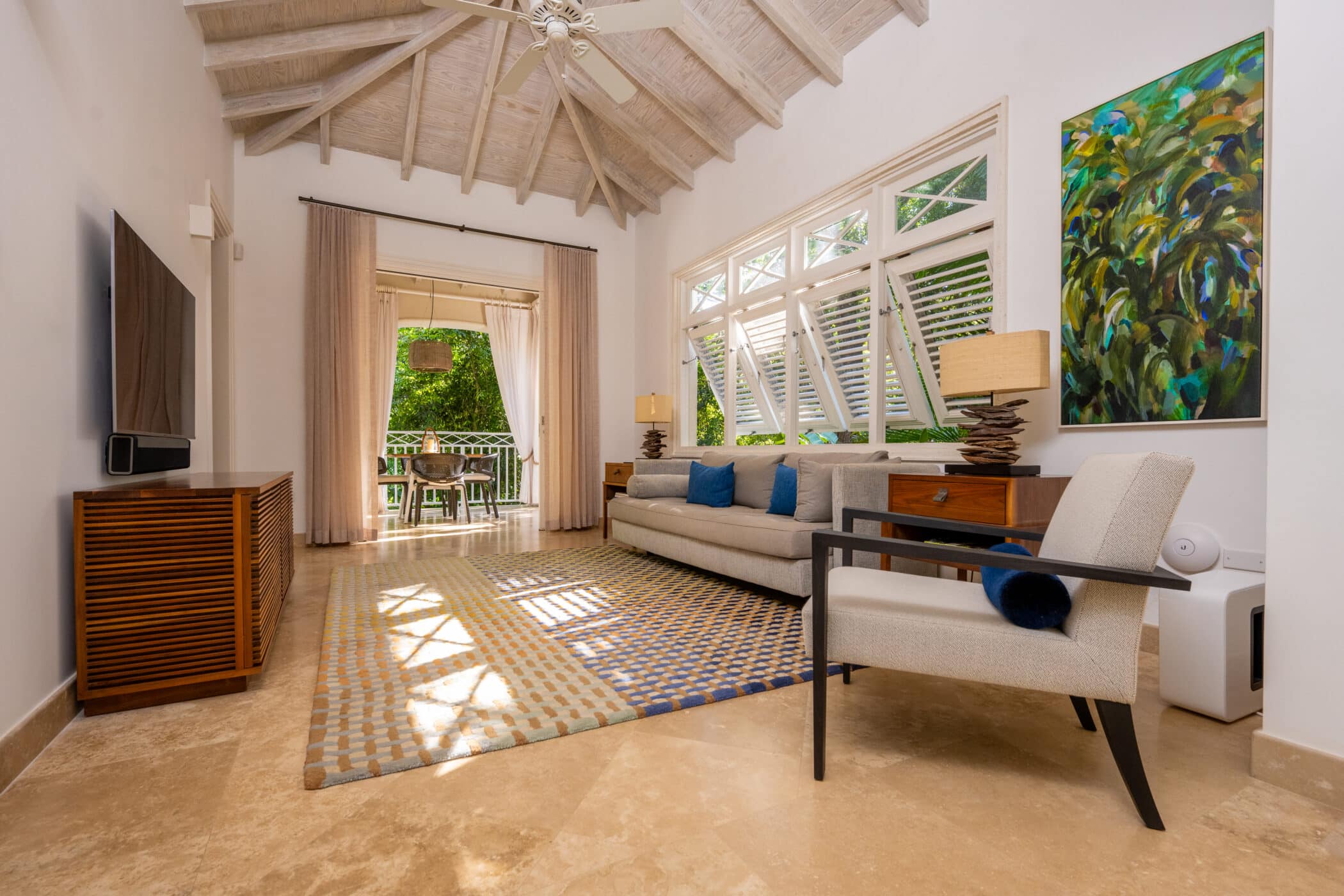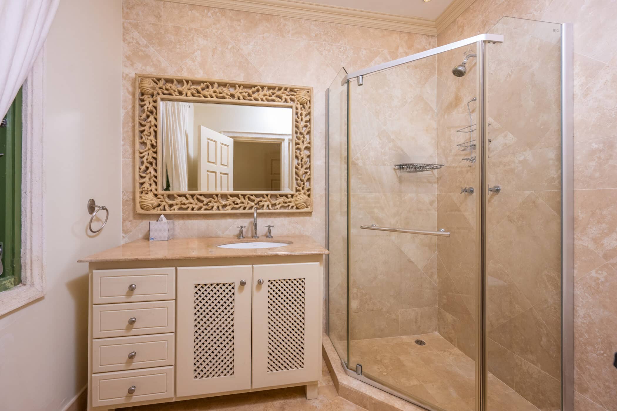 Greentails Villa 5, is a stunning 4-bedroom estate located 400ft above the Platinum Coast of Barbados, surrounded by constant breezes, mature trees, and lush tropical flora. This exquisite 3-bedroom, 3.5-bathroom villa spans approximately 2,700 sq. ft. and features a 1-bedroom guest cottage, offering additional private accommodation. The property epitomises luxury with high-quality finishes, natural stone floors, elegant bathrooms, and modern fitted kitchens with built-in appliances. Tray ceilings and open eaves, paired with ceiling fans, ensure a cool, comfortable environment throughout.