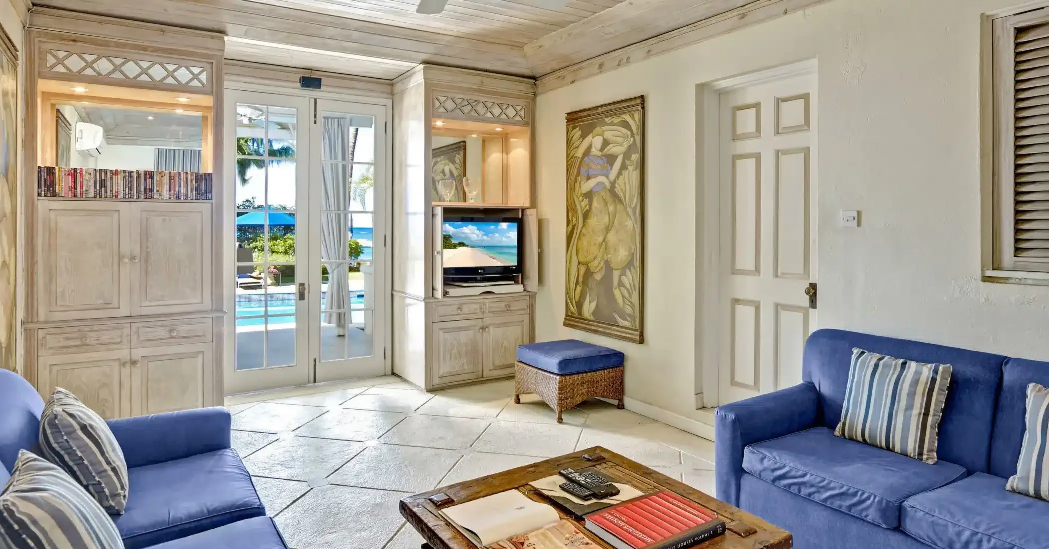 A modern coral stone villa located on the exclusive West Coast beachfront in St. James, Barbados. Privately owned and managed with a personal touch, this superb villa offers you holiday living at its finest. For those who prefer the privacy of their own pool, the owners have completed the gardens with the addition of a sparkling moat-like swimming pool, providing a haven of peace and tranquility.