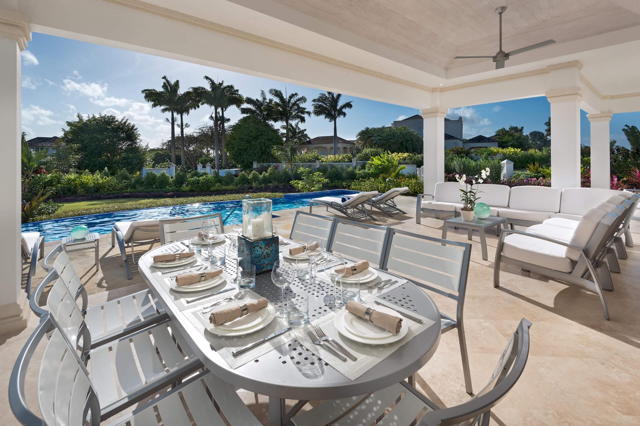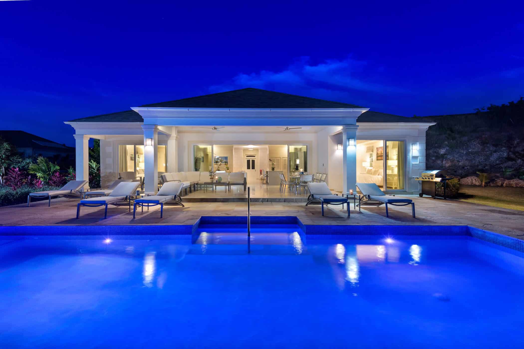 designed for relaxed Caribbean living. Four generous en-suite bedrooms include two