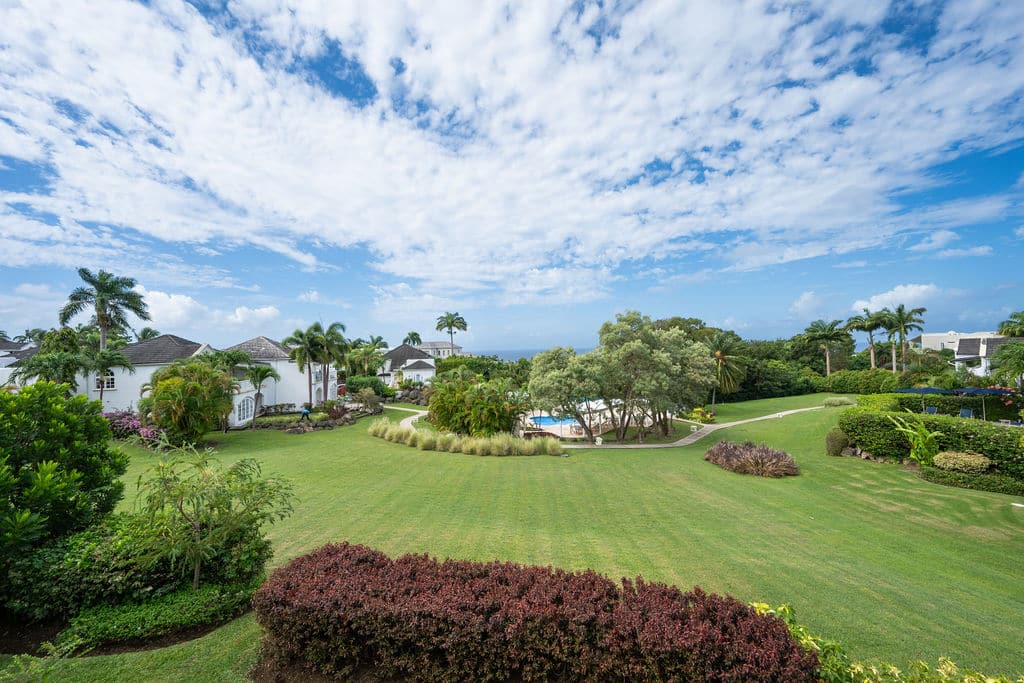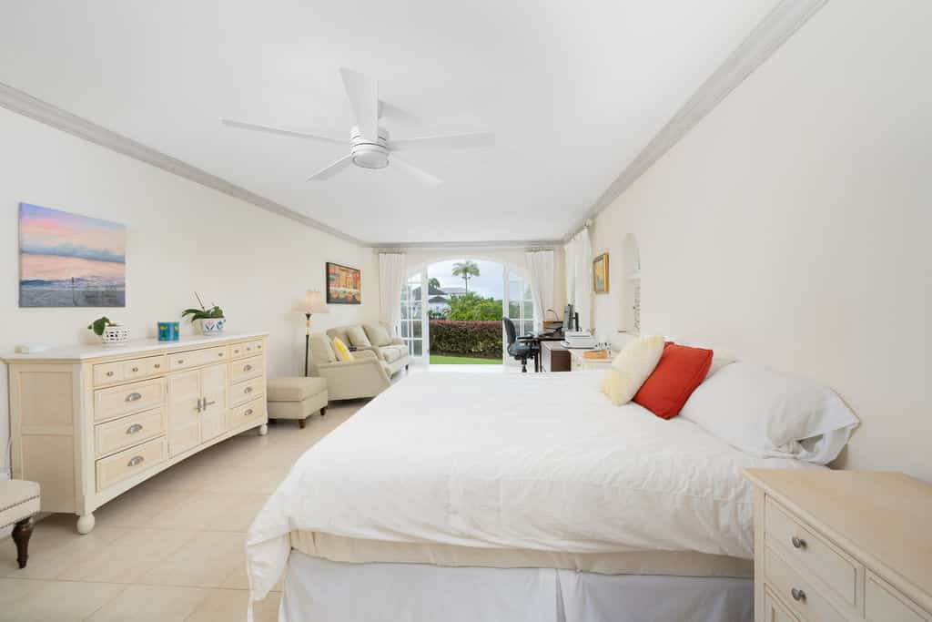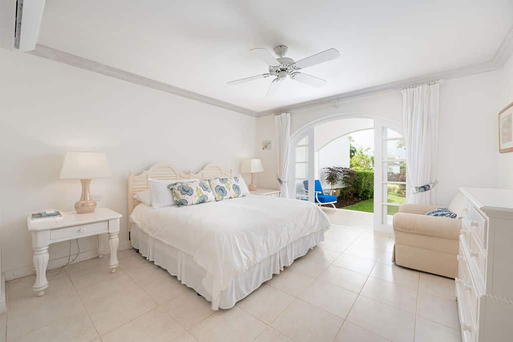Royal Villa 21 is a three-bedroom, three-bathroom townhouse built with local materials and designed to feel spacious, airy, and perfectly in tune with the Caribbean lifestyle. The beautifully appointed living and dining areas feature rustic-style furnishings and open onto a covered terrace overlooking mature gardens—an inviting setting for an afternoon drink. A fully equipped kitchen sits just adjacent. All three bedrooms are air-conditioned for added comfort.