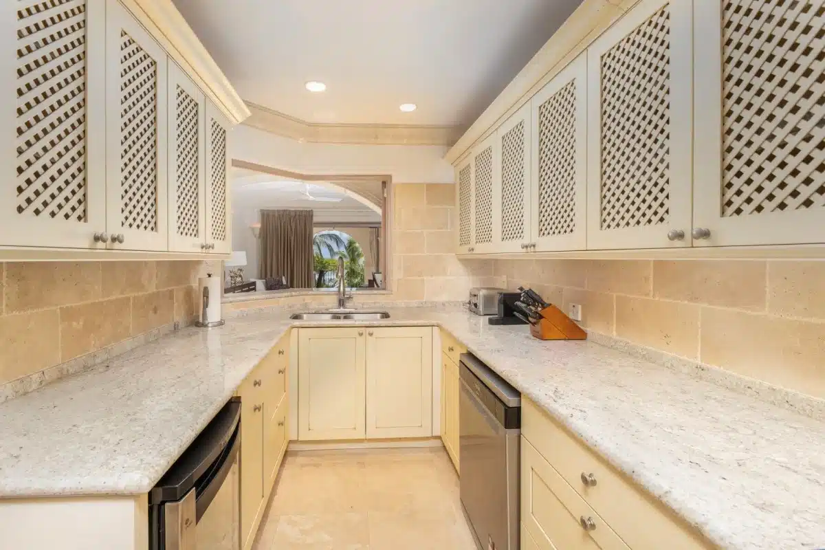 The open-concept living area features a soothing neutral palette that captures the essence of island living. A fully equipped kitchen with modern appliances flows seamlessly into the dining and lounge areas—ideal for morning coffee, sunset cocktails, or leisurely meals with loved ones.