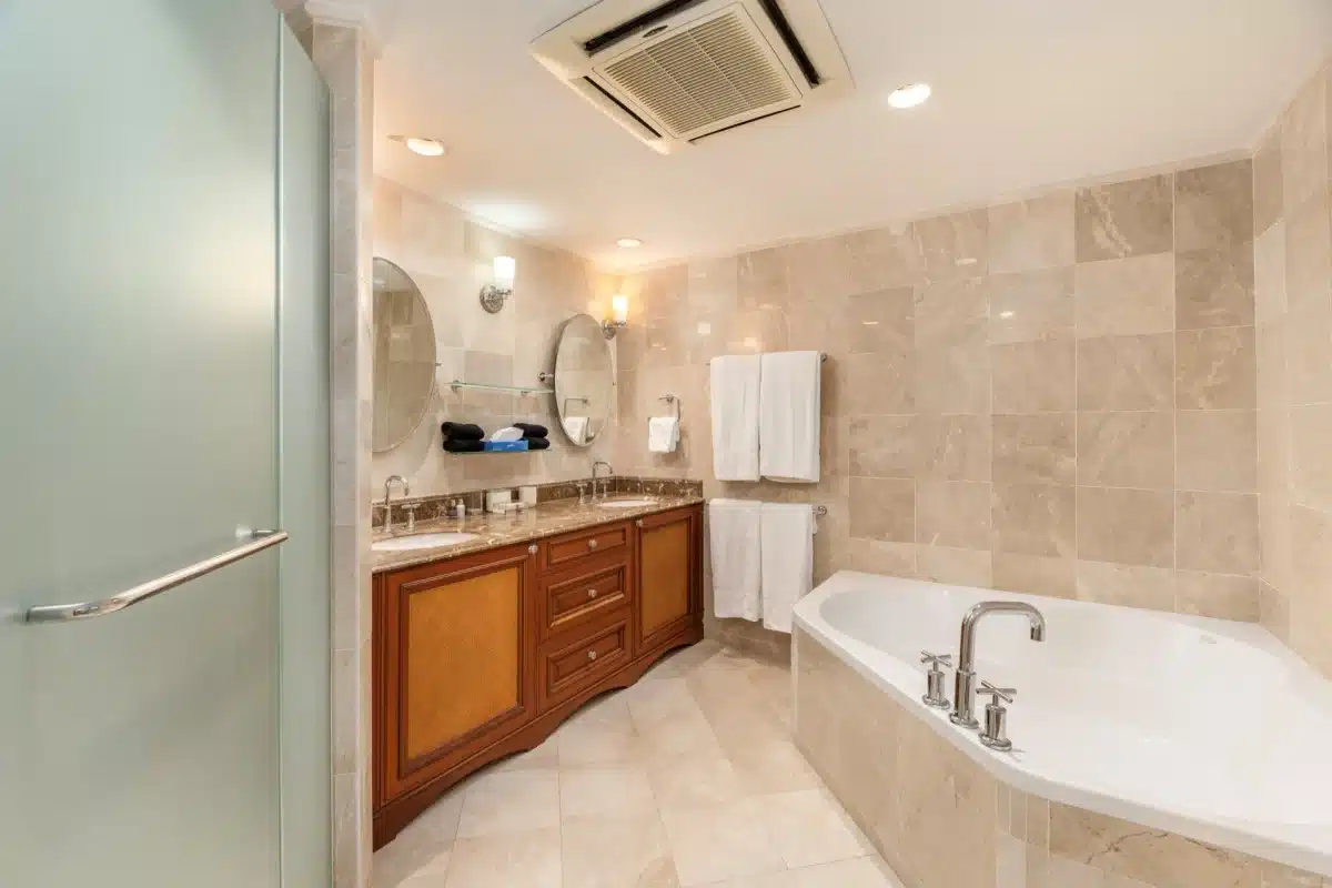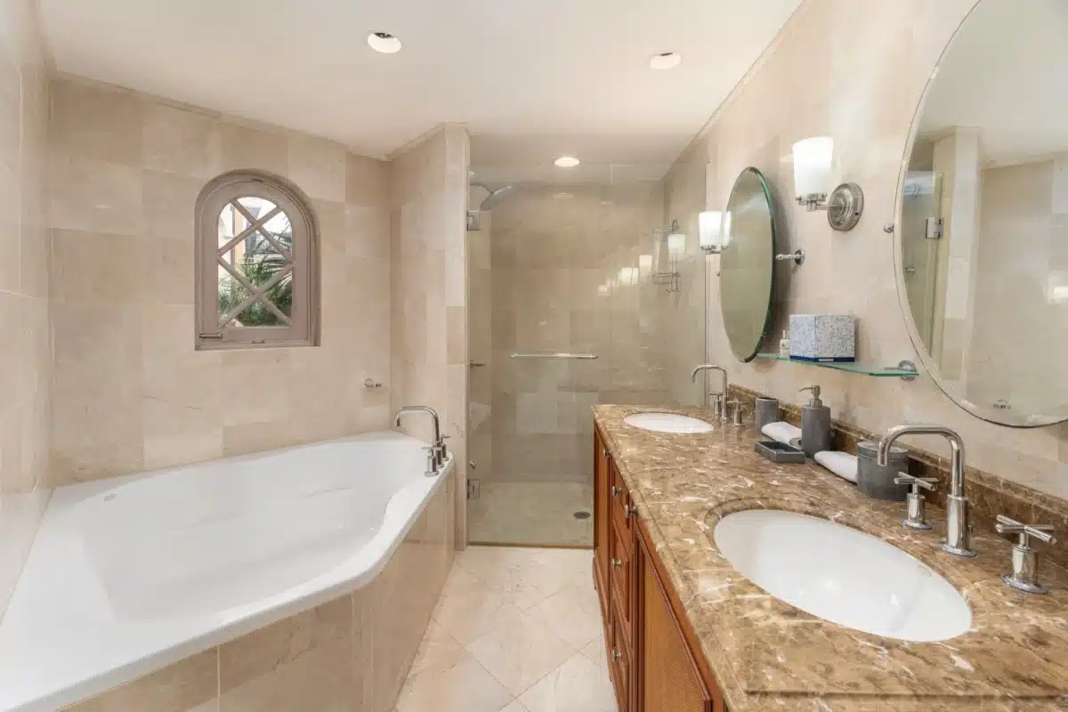 Primary Suite: King bed with direct ocean views, ensuite bathroom featuring a soaking tub and walk-in shower