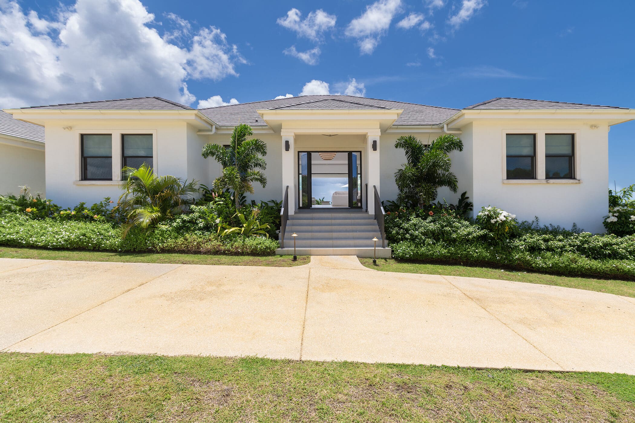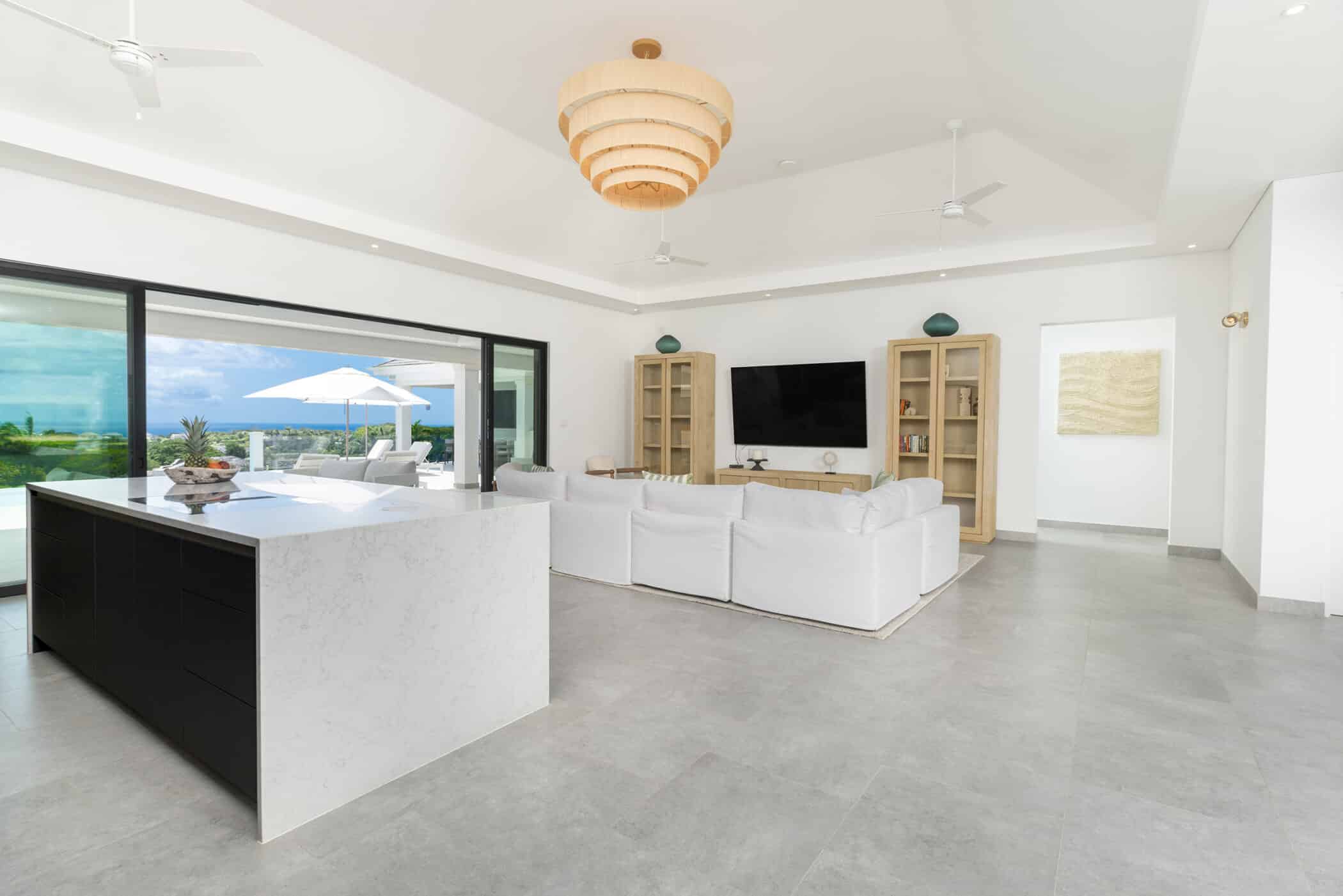 The Fairways is a contemporary five-bedroom, five-and-a-half-bathroom villa positioned for sweeping ocean and golf-course views.