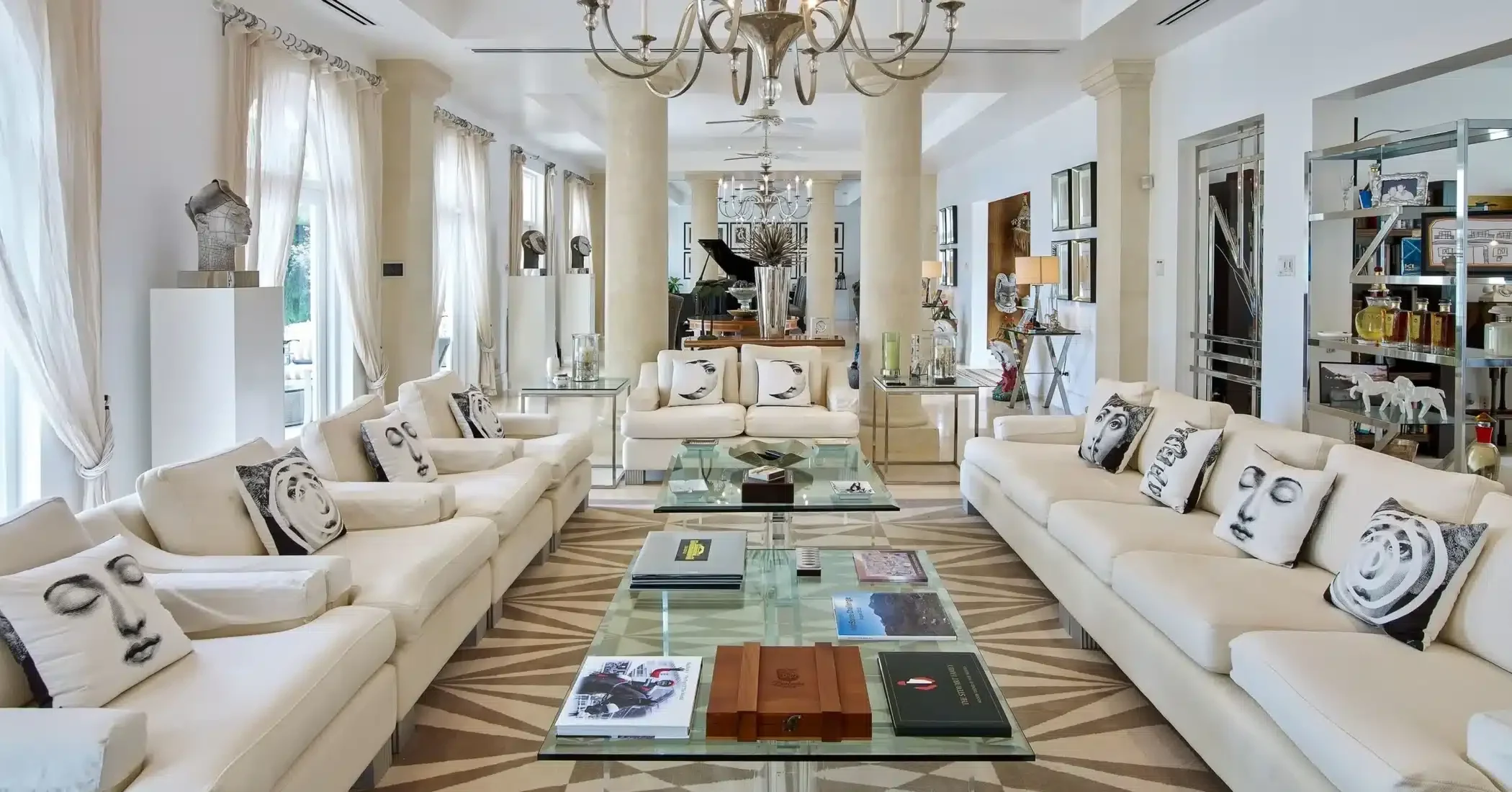 The opulence of The Ridge is reflected in key statement pieces flown in from all over the world. The house includes a cottage-sized wine room, cinema, spa, multi-level gym, and private tennis court.