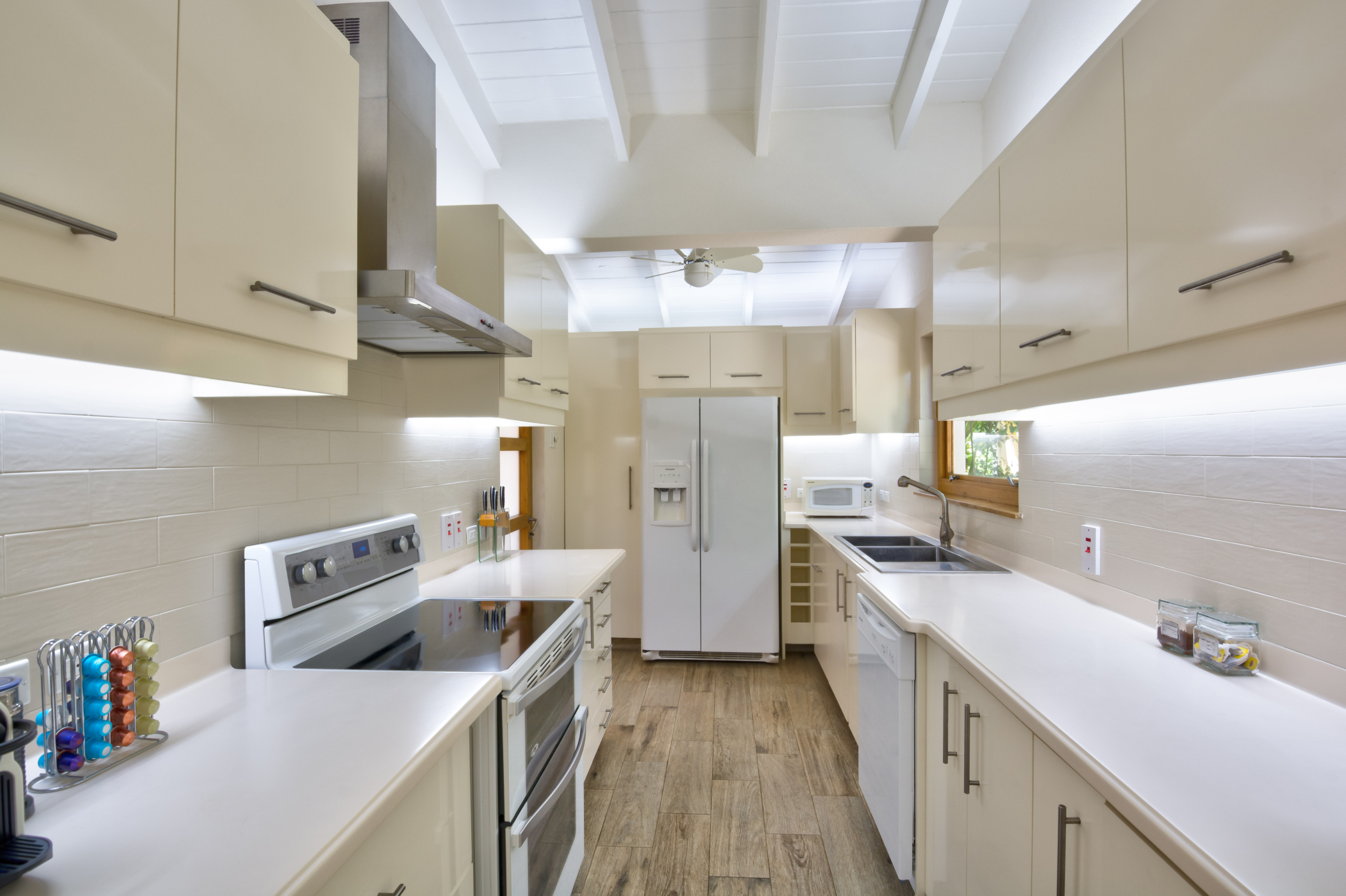 Inside, the house features an open-design concept with modern furniture and coral stone finishes. Large glass doors seamlessly connect the interior to the...