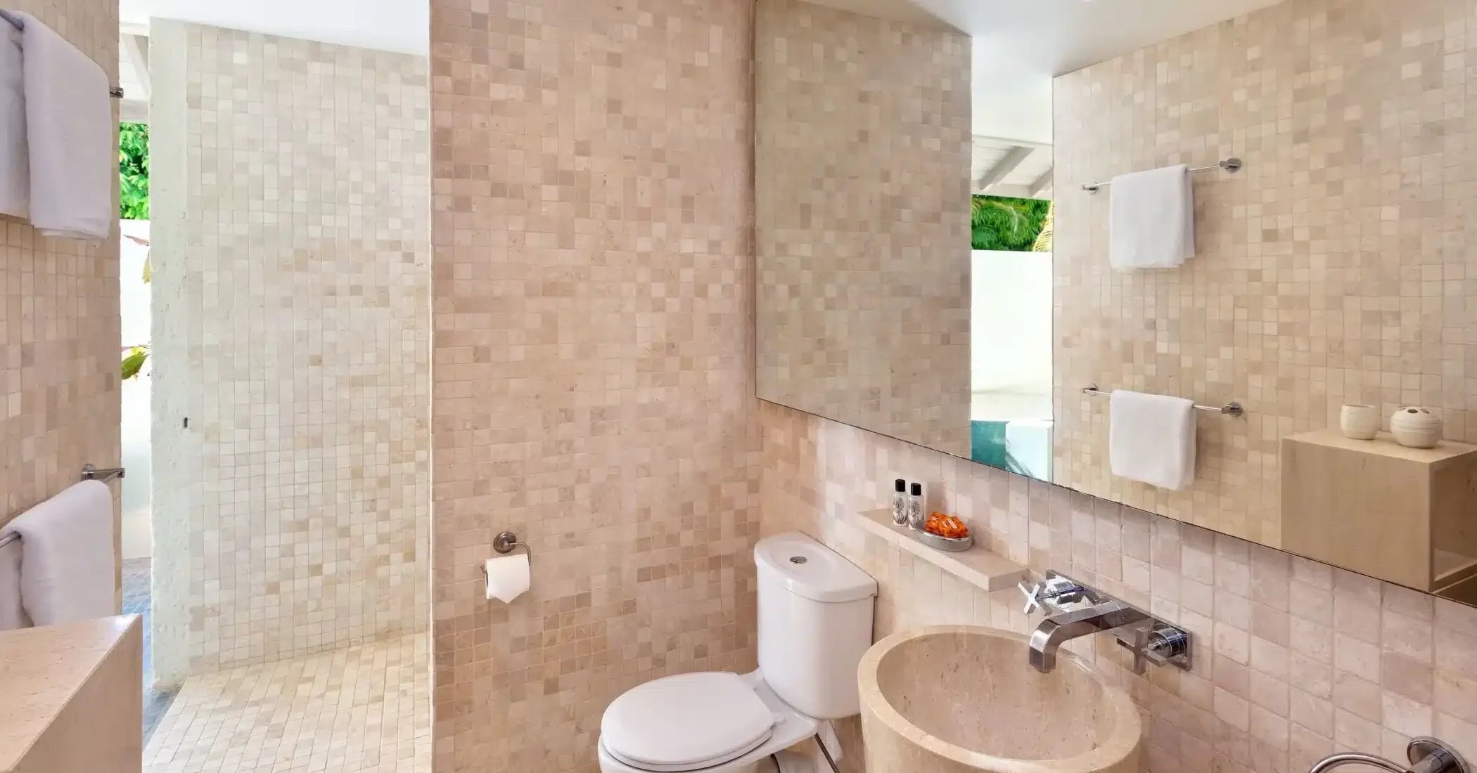 The spacious formal living room features handmade Balinese stone carvings and opens up to an outdoor terrace complete with a large infinity-edge pool and uninterrupted views of the Caribbean Sea. When lit up at night Tom Tom's pool deck transforms into a magical private setting...